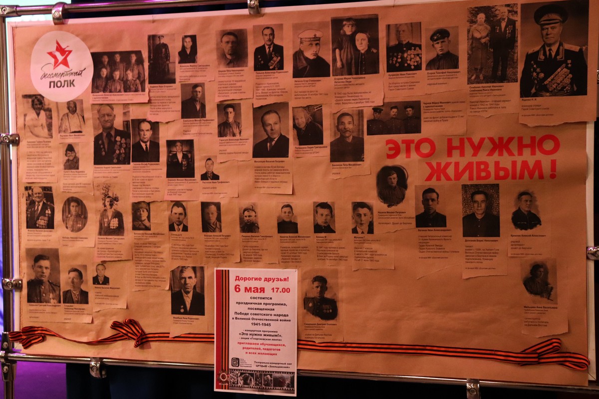 В рамках патриотической акции памяти в музее «Дорогами детства» были собраны фотографии родных и близких обучающихся, родителей и педагогов Центра творчества – участников Великой Отечественной войны, тружеников тыла. В этих фотографиях живет память о поколении, прошедшем войну, о судьбе целого народа и каждого солдата. На фотографиях выставки «Это нужно живым» есть фотографии батальонного комиссара, водителя ЗИСа, дочери полка, танкистов, артиллеристов, летчиков, моряков, санинструктора, рядовых и офицеров.