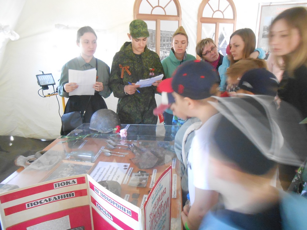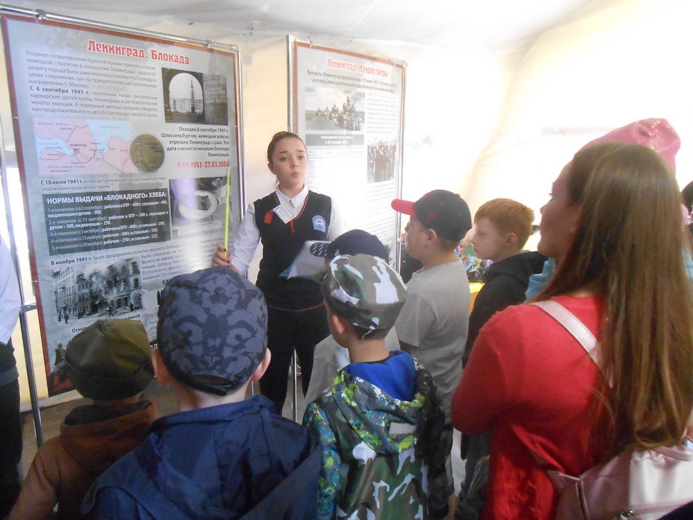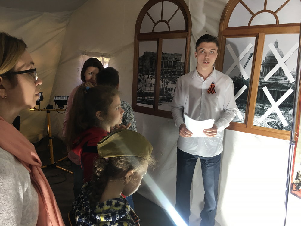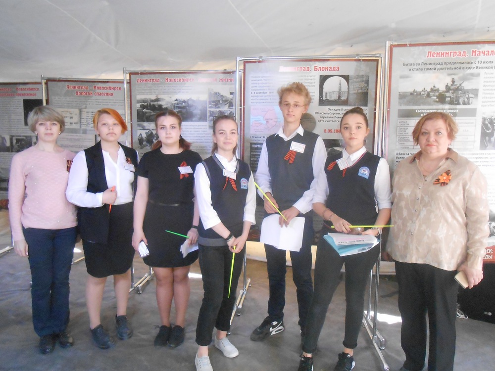9 мая, в день празднования Великой Победы, школьники Ленинского района приняли участие в акции «Ленинград и Новосибирск. Вместе к Победе!». В рамках акции на Монументе славы воинам-сибирякам были проведены экскурсии по музейной экспозиции для жителей нашего города. Посетители слушали рассказ о Блокаде Ленинграда, о блокадном хлебе, о Дороге жизни и Дороге спасения; увидели личные вещи солдат, павших в годы Великой Отечественной войны под Ленинградом, поднятые поисковым отрядом НСО «Поиск МГиВ» в ходе раскопок в Ленинградской области. Узнали, что же связывало Новосибирск и Ленинград, почему и за что ленинградцы до сих пор благодарны сибирякам.