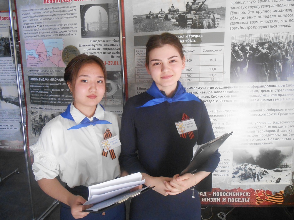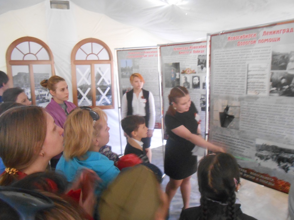 Эвакуация из Ленинграда в Новосибирск крупных промышленных предприятий и заводов; детских домов и мирных жителей; научного и культурного достояния (исследовательских институтов, театральных коллективов, оркестров и музейных экспозиций). Об этом и о многом другом рассказали наши экскурсоводы. Ни один посетитель не остался равнодушным, об этом свидетельствуют оставленные ими отзывы с благодарностью в адрес ребят.