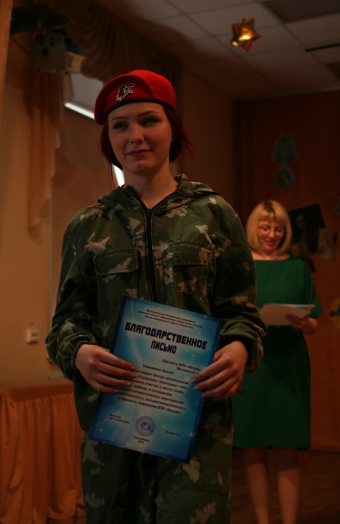 Именно под лозунгом «Вместе мы сильны!» и прошла торжественная программа 17 мая, на которой были подведены итоги деятельности клуба за год. Администрация Центра внешкольной работы «Галактика» поблагодарила самых активных курсантов за помощь в проведении военно-патриотических мероприятий, ответственность, дисциплинированность и верность традициям.