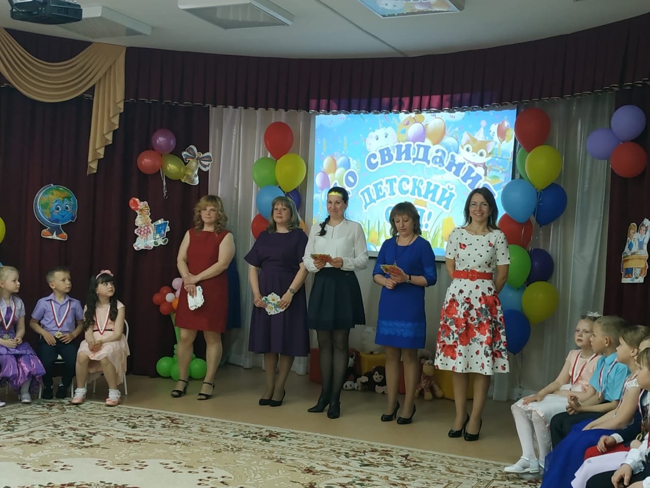 По традиции заведующая Антонина Владимировна Соболева поздравила выпускников, поблагодарила за отличную работу сотрудников, наградила их памятными подарками, а также вручила Благодарственные письма и подарки родителям.