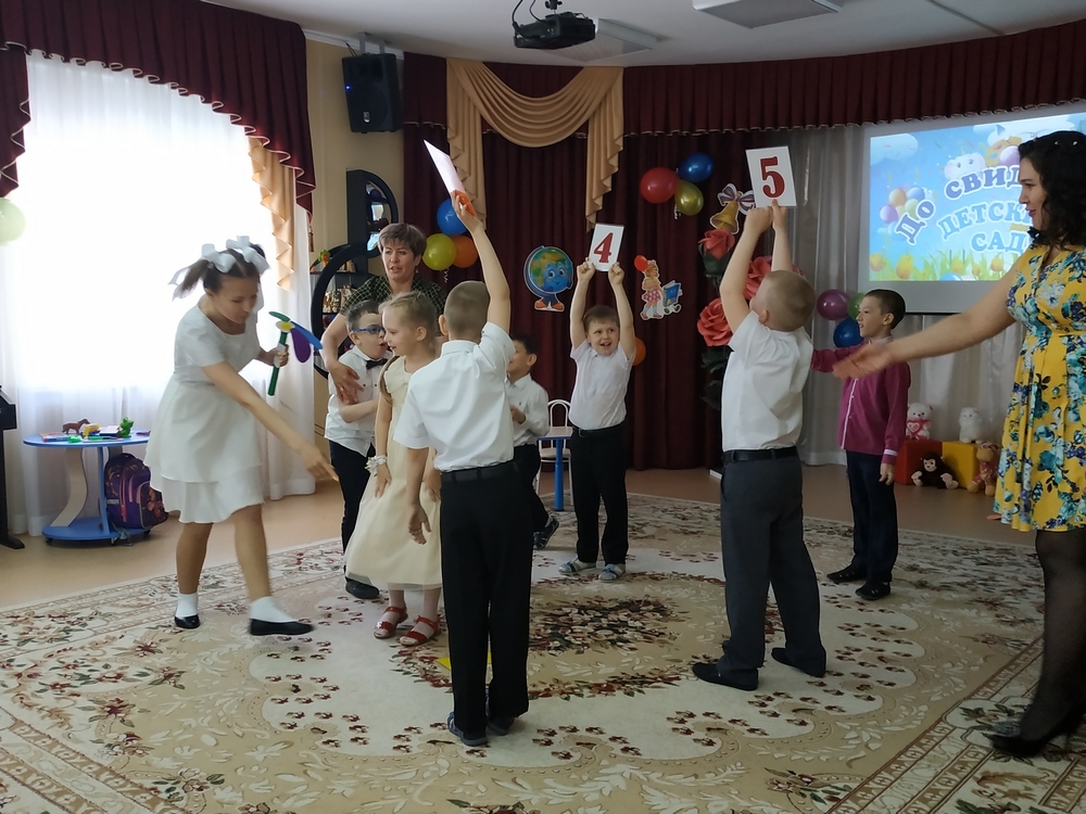 Празднично украшенный зал встретил нарядных, трогательных девчонок и мальчишек, как-то сразу повзрослевших. Выпускники с наслаждением пели песни, играли, читали стихи, рассказывали Вовке из Тридевятого царства и Василисе Премудрой, как они готовы к школе. Удивили всех родители, которые устроили настоящий флешмоб, проиллюстрировав свои танцевальные и певческие навыки. А затем мальчики, как настоящие кавалеры, пригласили девочек на прощальный вальс. Взрослые не скрывали слез умиления, радости и гордости за своих детей.