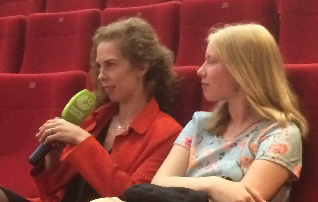 Многое на этом показе было необычно: интерактивная программа от Гёте-института для ребят перед началом, сам просмотр фильма с голосовым переводом в зале (переводчик Татьяна Молодцова), обсуждение после просмотра, которое провели педагоги-модераторы из МБОУ СОШ №49 Алла Николаевна Митянина и Светлана Платоновна Поршнева.