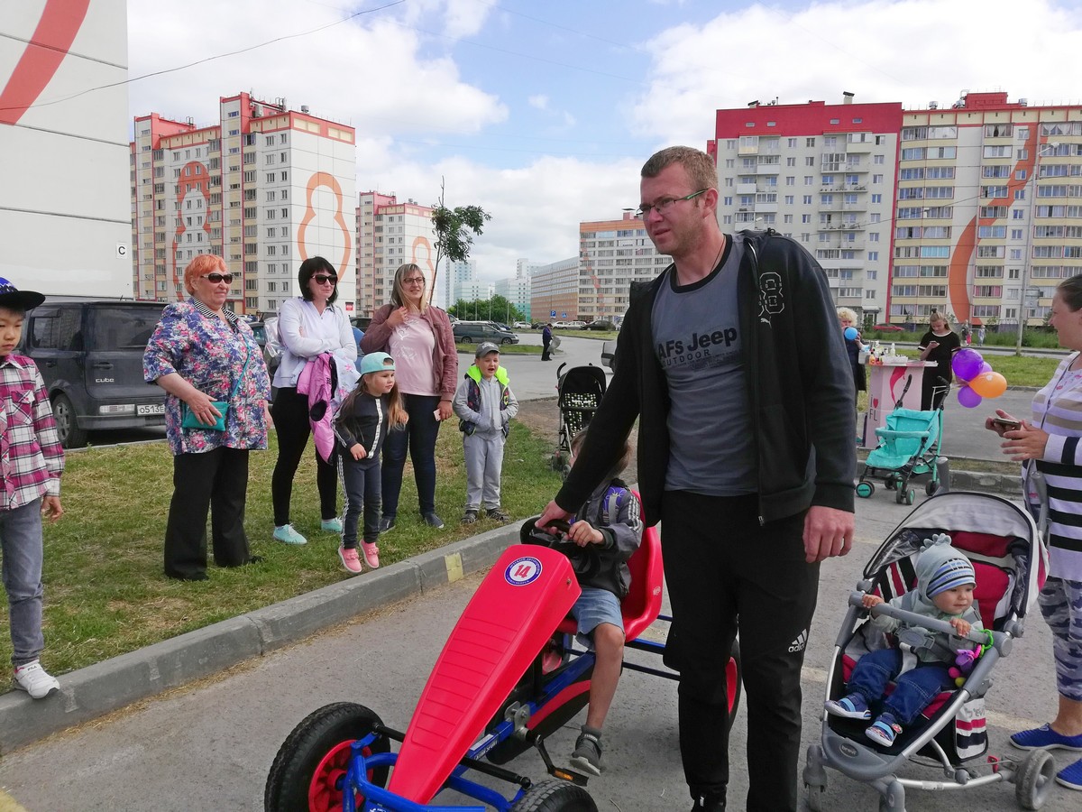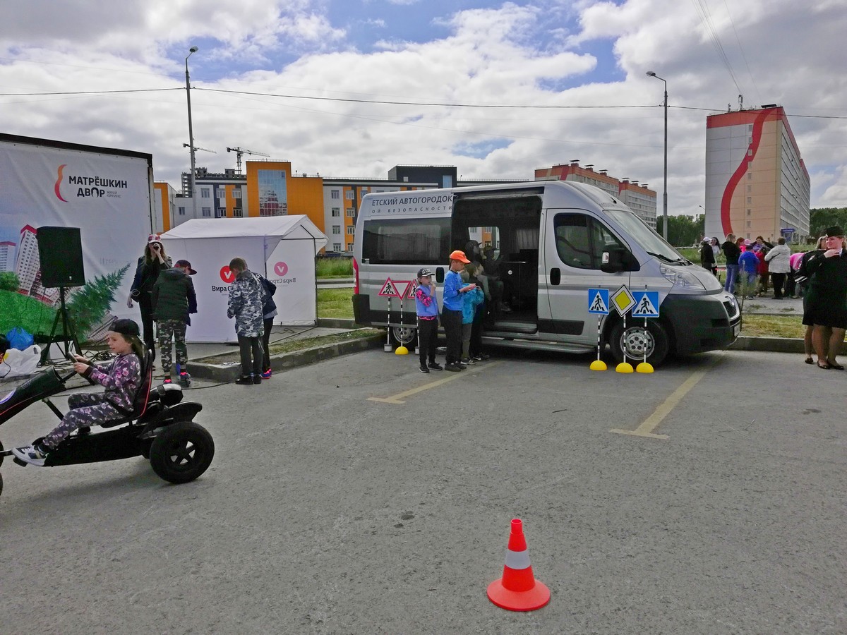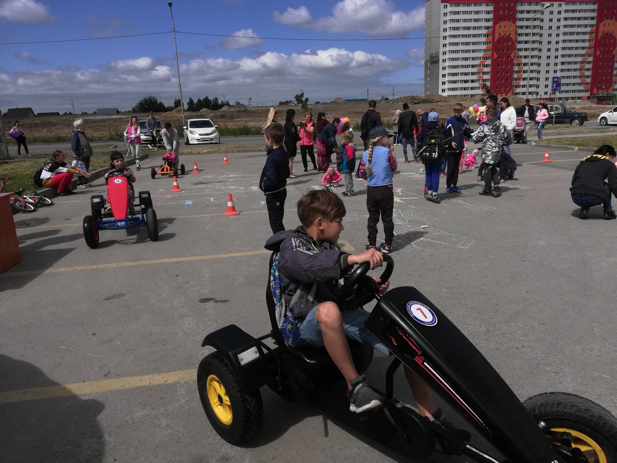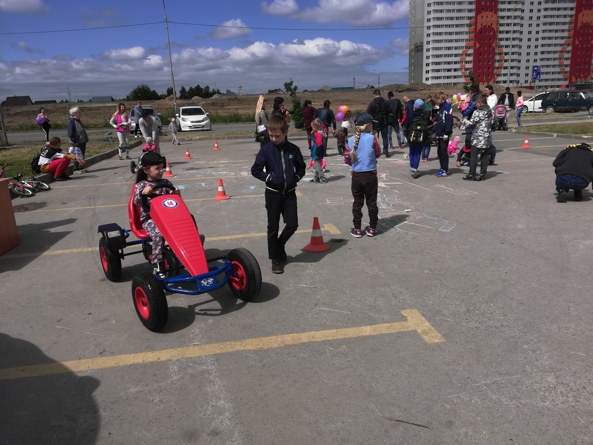 На жилмассиве «Матрешкин Двор» в Кировском районе Детский автогородок совместно с сотрудниками Госавтоинспекции рассказывали ребятам разного возраста о правилах безопасного поведения на дороге, проводили тематические викторины, конкурс детского рисунка на асфальте. С одинаковым удовольствием во всех мероприятиях принимали участие и совсем маленькие дети, и их родители – совсем скоро все пространство асфальта вокруг площадки было заполнено разноцветными изображениями автомобилей, светофоров, дорожных знаков, пешеходных переходов и детей, спешащих в школу! А маленькие непоседы могли проявить себя в качестве водителей, прокатившись на веломобиле по импровизированной проезжей части.
