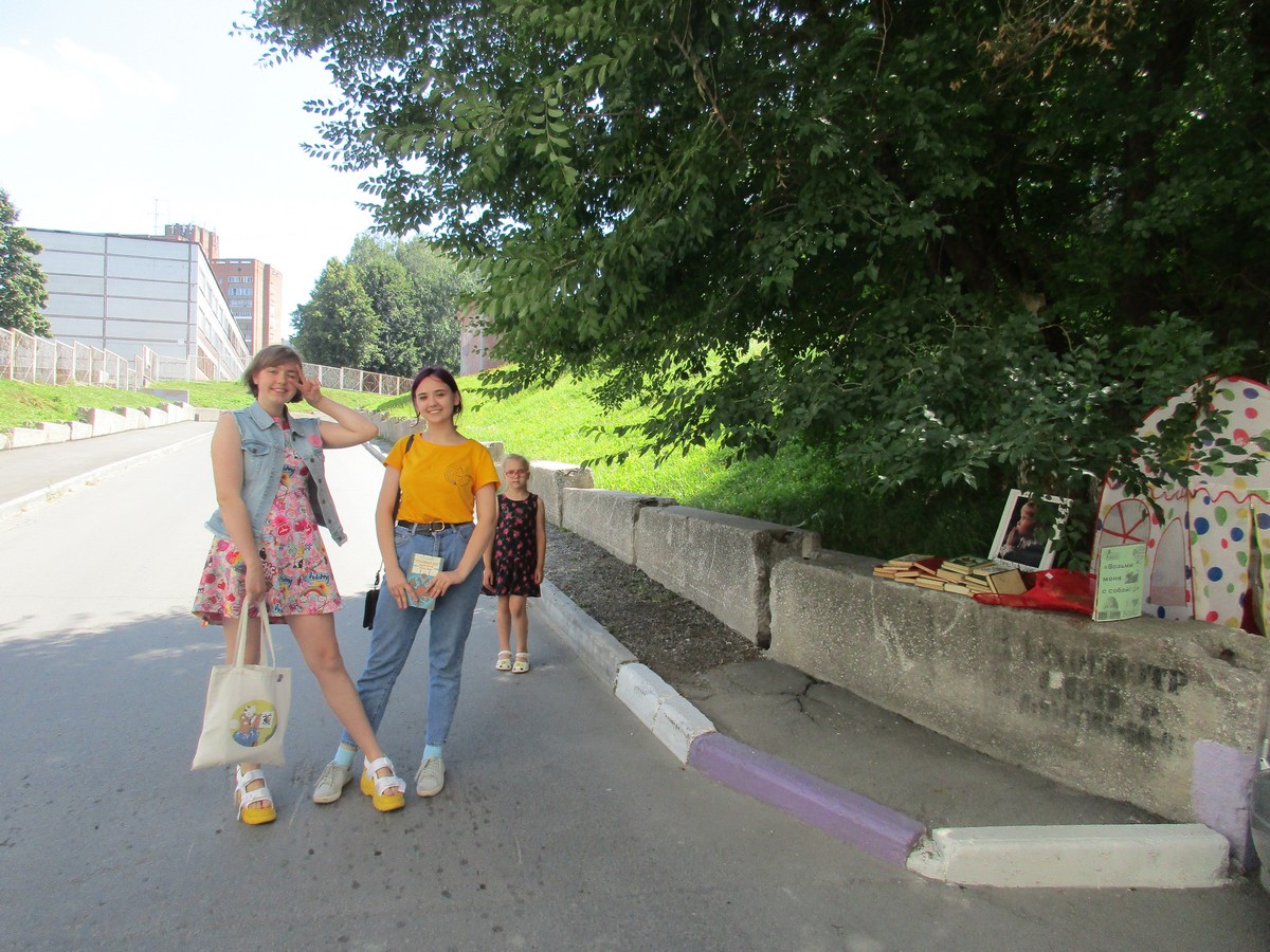 На лужайке перед филиалом «Библиотеки им. братьев Гримм» (ул. Курчатова, 37) 7, 14, 21 августа с 12-00 до 14-00 всех ждёт «летний читальный зал», который может посетить любой желающий. В тени зелёных кустарников и насаждений модули с литературой для детей и взрослых. 7 августа 2019 года читальный зал на свежем воздухе стал для посетителей своеобразным местом встреч, позволил многим «вспомнить молодость»: взрослые встречались с «книжными друзьями детства», находили среди предлагаемой литературы издания, которые читали в своей юности и о которых думали, что прочесть их больше нет возможности. Дети мастерили самолётики, животных из цветов репейника, рисовали указатели на асфальте «библиотека на траве» и «библиотека Гримм». Самые маленькие играли в кукольный театр, отдыхали в «теремке» и, конечно, читали любимые книжки. Марина Романова, куратор русской классической школы, привезла уникальную конторку, непроливайку с настоящими чернилами и провела потрясающий мастер-класс по каллиграфии. Первая летняя встреча стала открытием нового сезона «Библиотеки на траве 2019» и стала началом большой дружбы РКШ (русской классической школы) с филиалом «Библиотека им. братьев Гримм» МКУК ЦБС Калининского района.