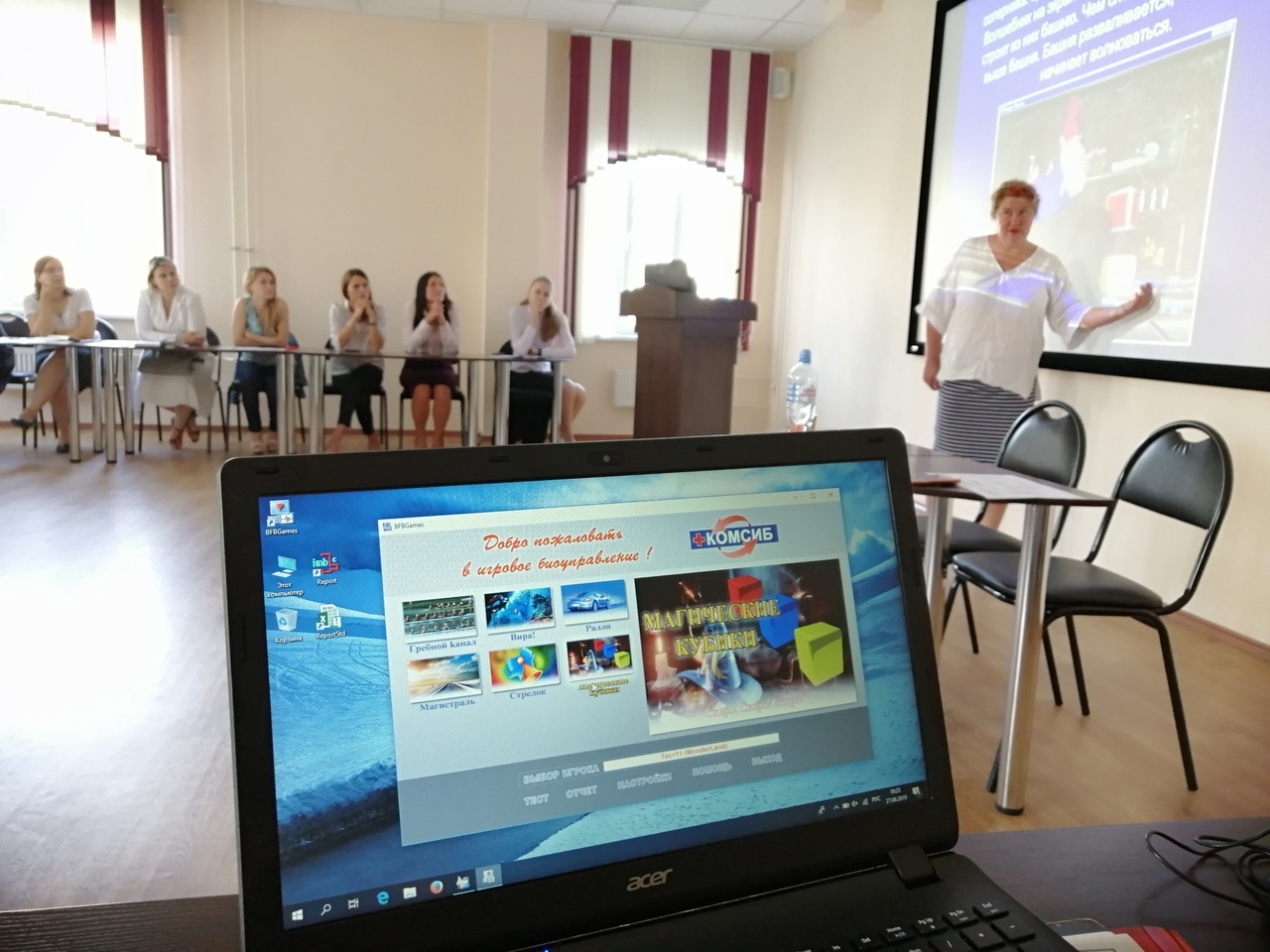 Одним из партнеров школы является НИИ молекулярной биологии и биофизики СО РАМН, его представитель Даниленко Елена Николаевна представила присутствующим био-лечебную оздоровительную технологию, основанную на биологической обратной связи. Любой из педагогов получил возможность попробовать свои силы в работе с приборами и мгновенного компьютерного биоуправления. Под руководством Киреевой Екатерины Геннадьевны, руководителя службы психолого-педагогического сопровождения МБОУ СОШ № 82 была проведена краткая презентация их работы.
