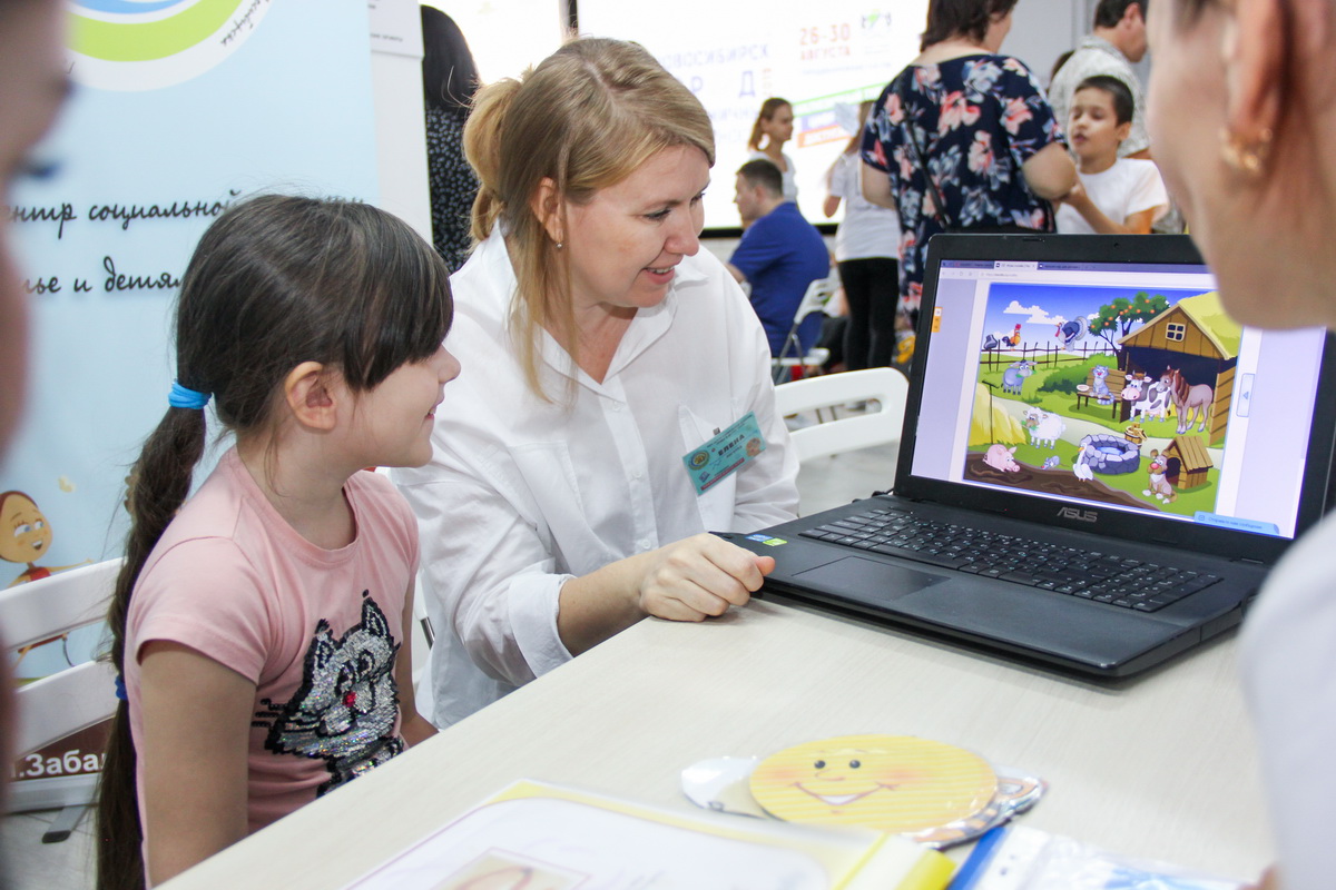 К примеру, от нашего учреждения сегодня на площадке представлен метод слуховой стимуляции «Томатис», интерактивные занятия со смарт-доской от специалистов, световые планшеты – рисование светом, также здесь работает психолог, который консультирует родителей, помимо прочего, используя в работе специальные наушники и световые релаксационные очки...».
