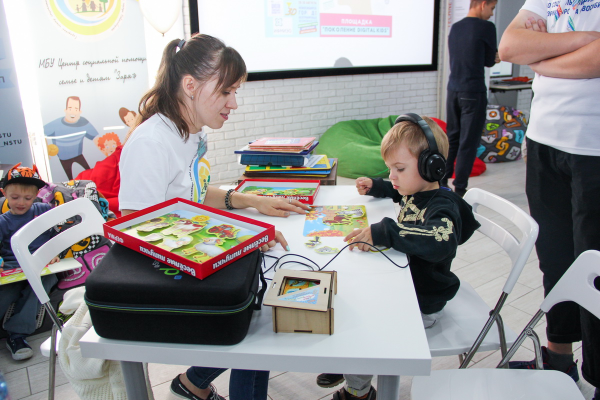 Здесь для ребят с ограниченными возможностями здоровья и их родителей прошли развивающие интерактивные занятия с использованием инновационных разработок. Организаторами площадки выступили Городской центр социальной помощи семье и детям «Заря» совместно с Фондом «Сохрани жизнь».