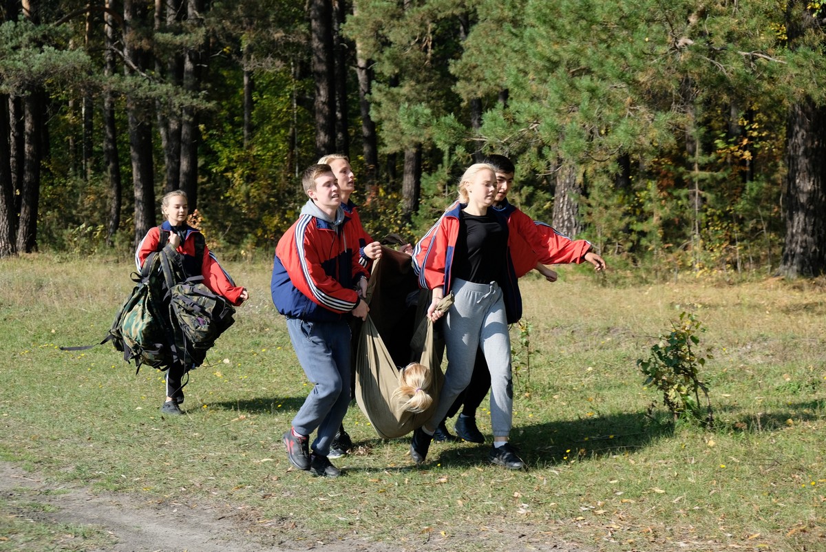 Каждой команде надо было пройти испытания в Полосе препятствий («Укладка рюкзака», «Установка палатки», «Разжигание костра», «Бабочка», «Переноска пострадавшего», «Переправа маятником», «Навесная переправа», «Паутина», «Передвижение по кочкам»).