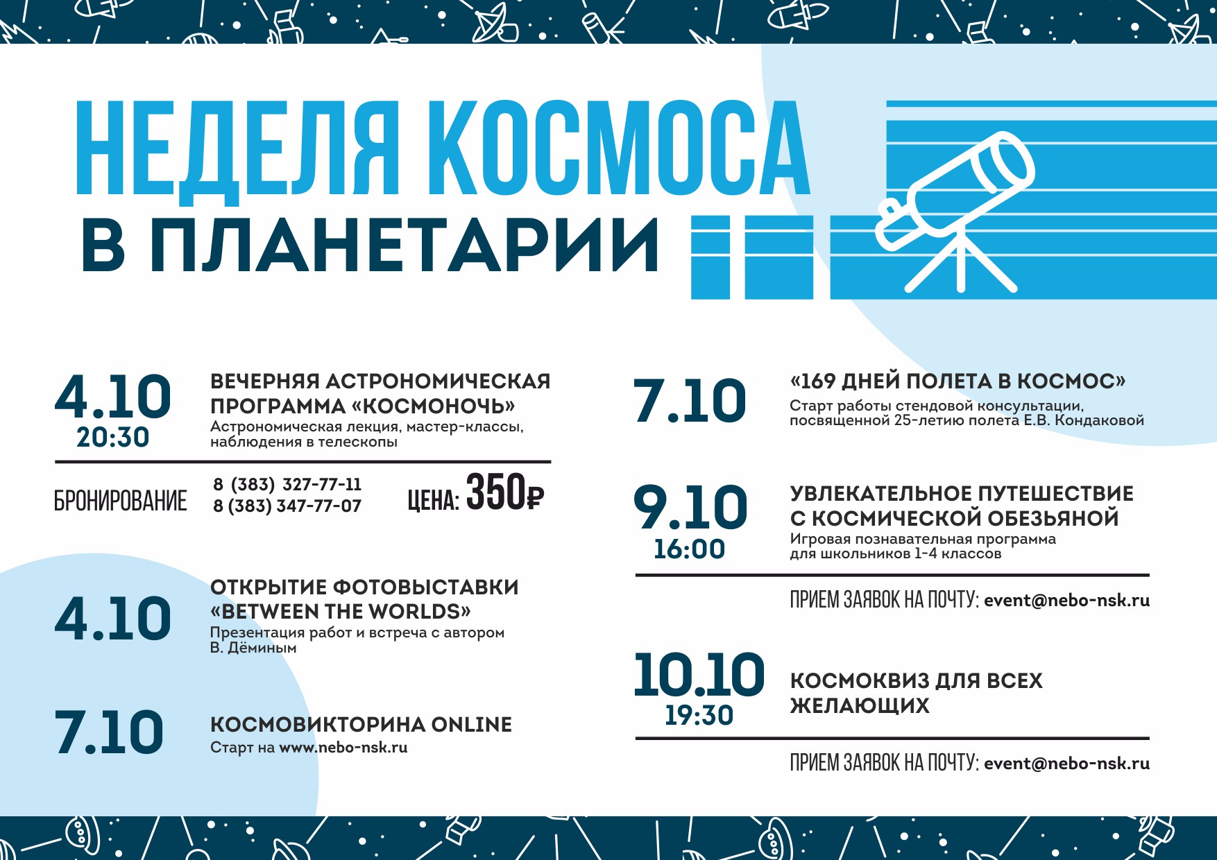 С 4 по 10 октября 2019 года Большой новосибирский планетарий отмечает Всемирную неделю космоса!