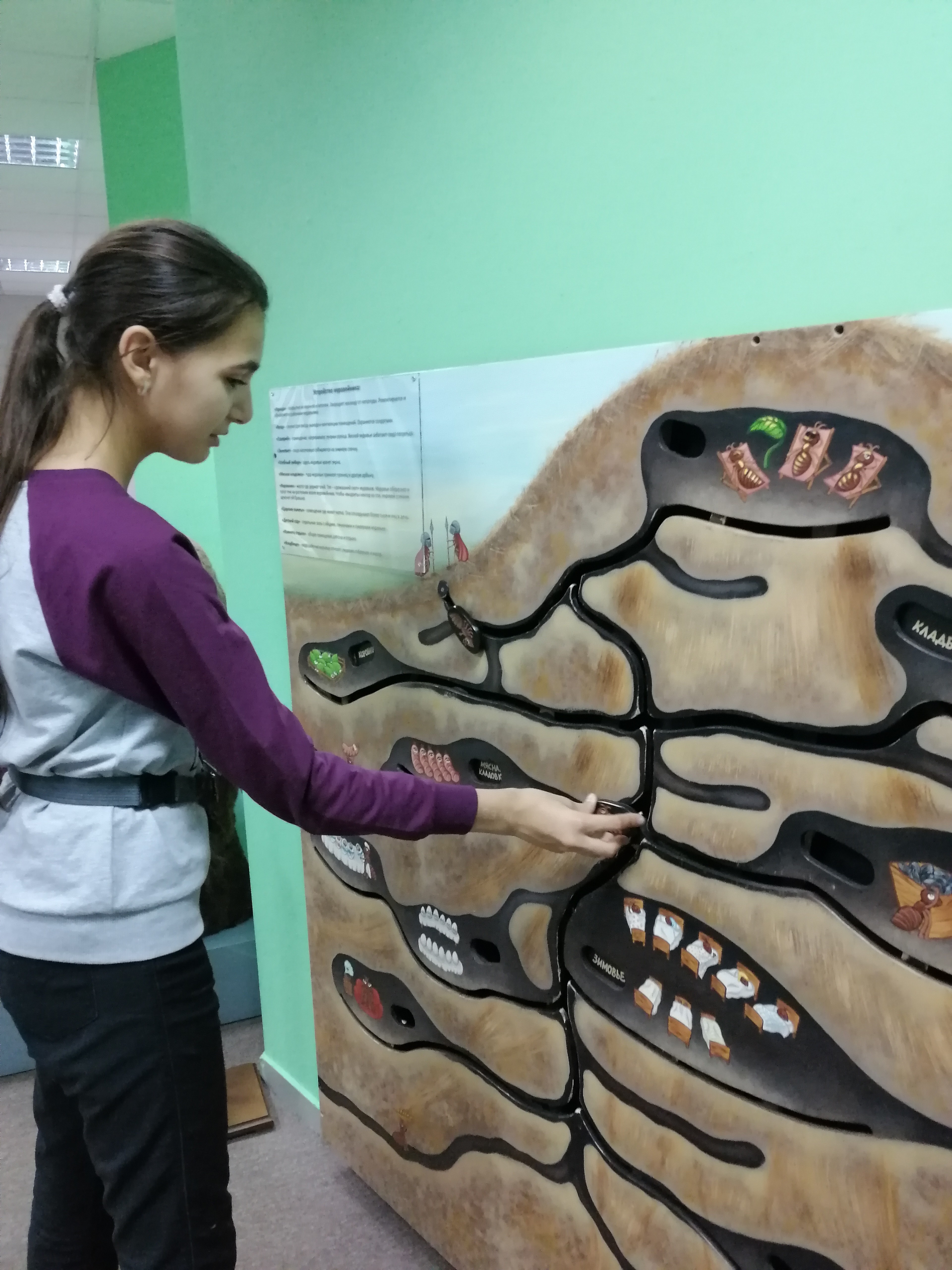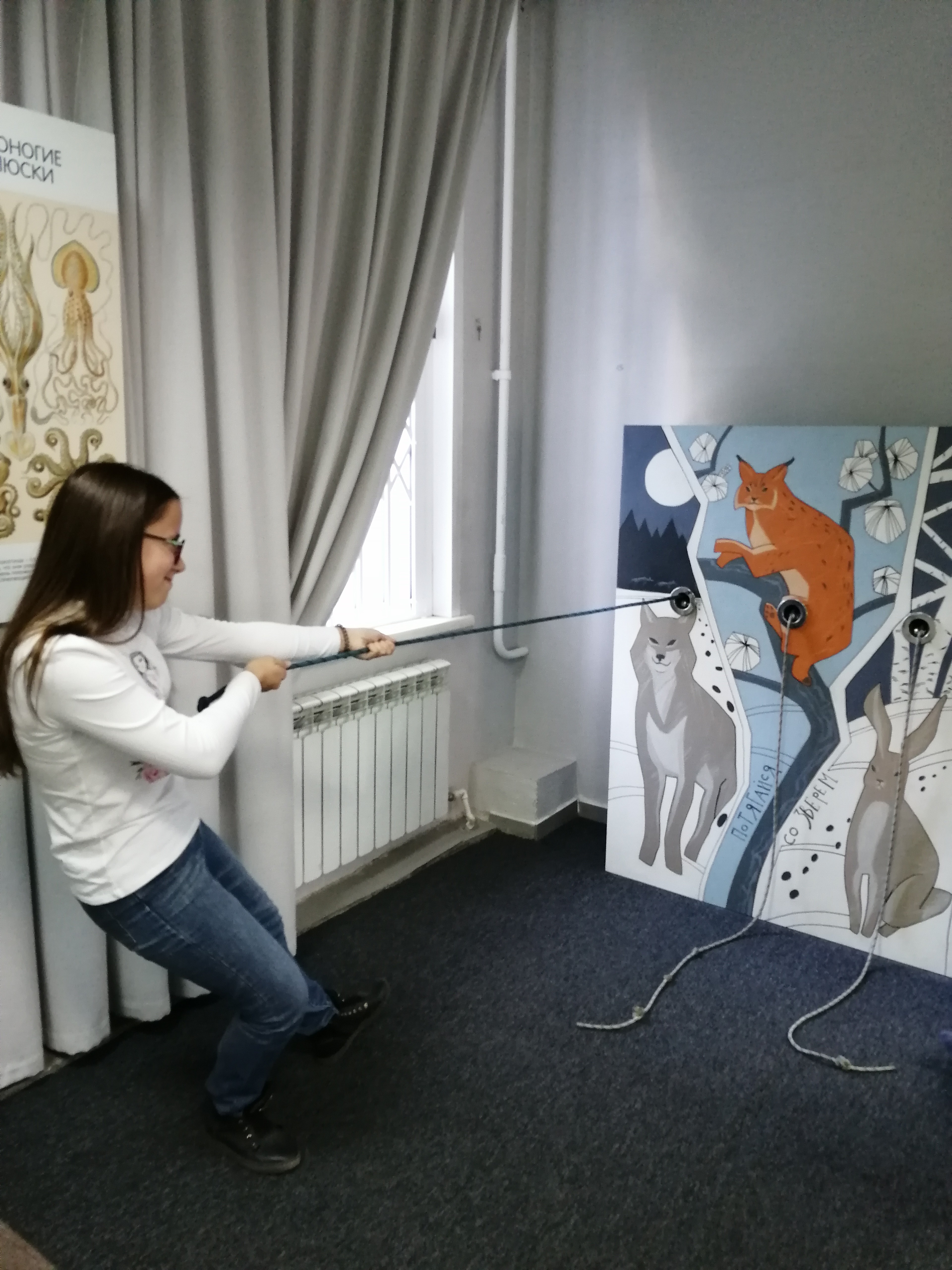 Для меня было приятно узнать, что у музея имеется игровой зал для детишек. И не просто игры, а игры, направленные на изучение животных. Даже нам восьмиклассникам было интересно поиграть в некоторые из них. Например, игра, где нужно было тянуть канат. Вроде ничего особенного, но каждый канат натянут с такой с силой, которая имеется у определенного животного. Самой слабенькой оказалась белочка, а самым сильным волк. Так же благодаря одной из игр мы узнали строение муравейника. Кто же знал, что у муравьев оказывается есть комнаты для хранения добычи, место где они греются, где отдыхают и где держат тлю. Теперь знаем, что в муравейнике все продуманно для благополучного проживания.