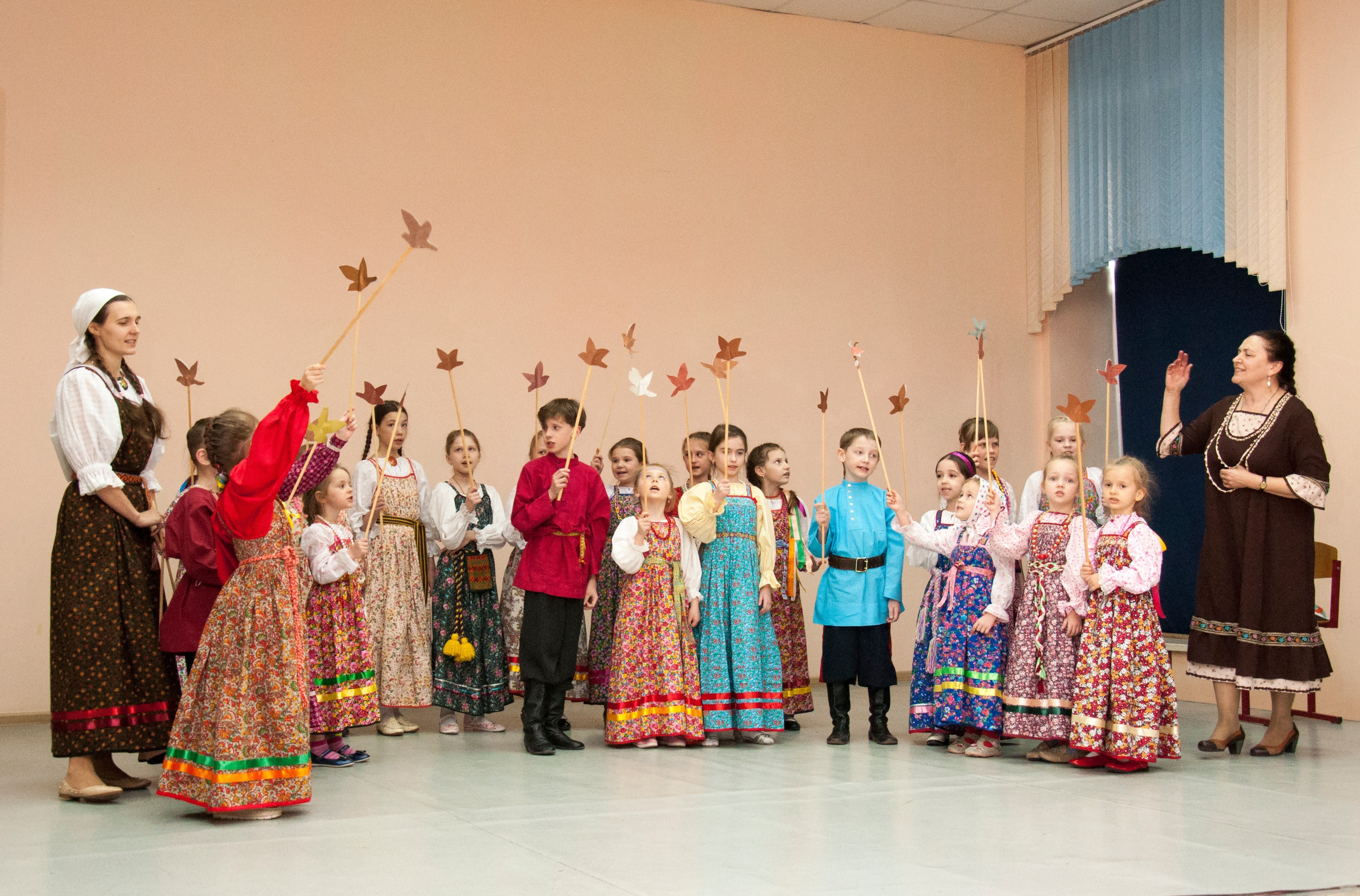 В программные занятия обучающихся народному творчеству входят изучение традиций, основ и особенностей народной певческой культуры, а также народного календаря и театра, хореографии и инструментального творчества. Задача педагога заключается в том, чтобы показать учащимся всё богатство русской традиционной культуры и путем собственной активной творческой деятельности каждого ученика повысить уровень его художественного воспитания.