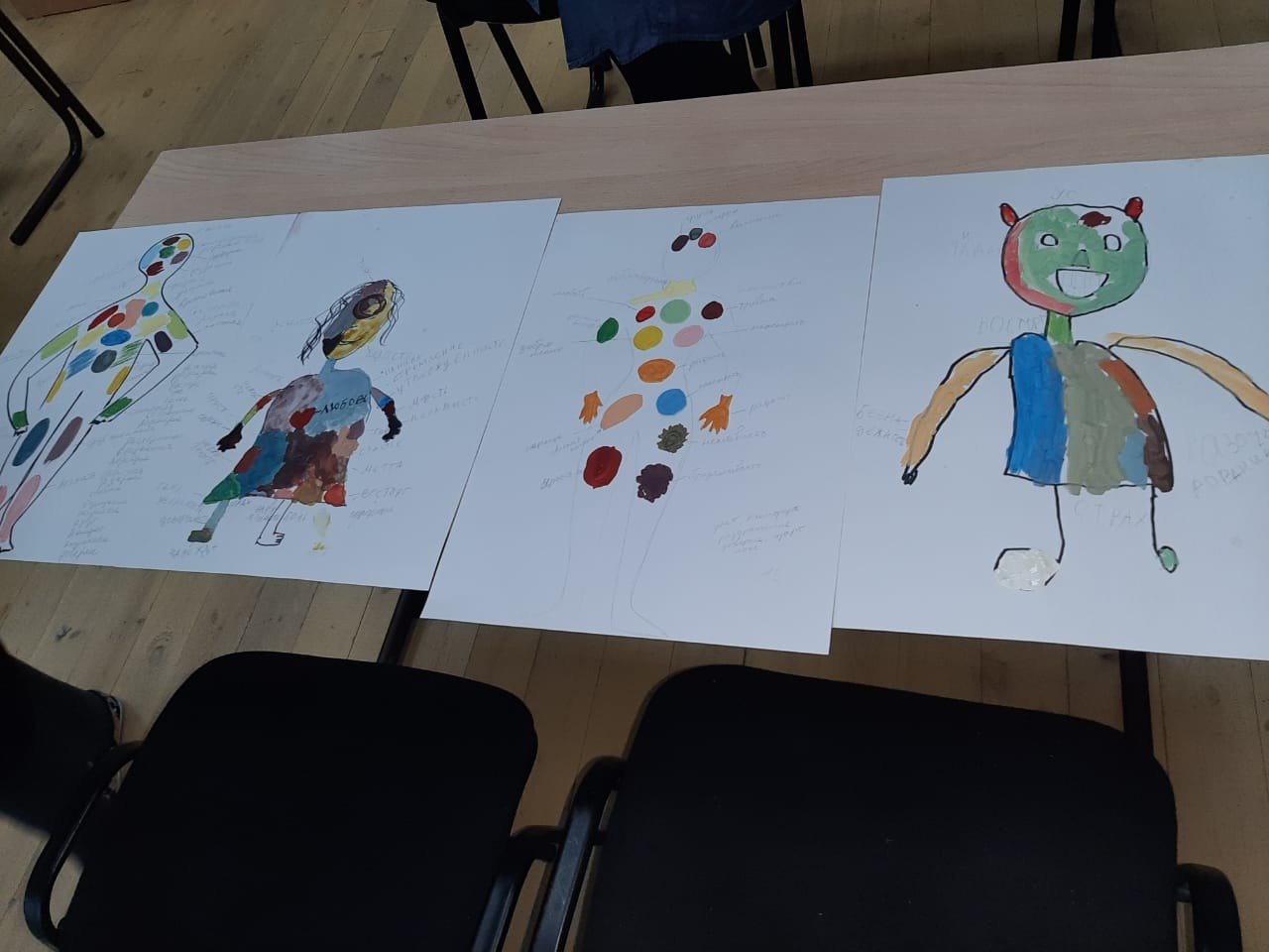 Ребята и родители с помощью педагога Титатаренко И.В. выполняли задание по осознанному отношению к цвету. Познакомились с темой «Как влияет цвет на эмоциональное состояние человека», в предложенной ситуации на практике разукрасили трафарет человек и обсудили, почему в работах преобладают те или иные цвета. Как сделать так, чтобы помещение, в котором занимается ребенок, было комфортным и благоприятным.