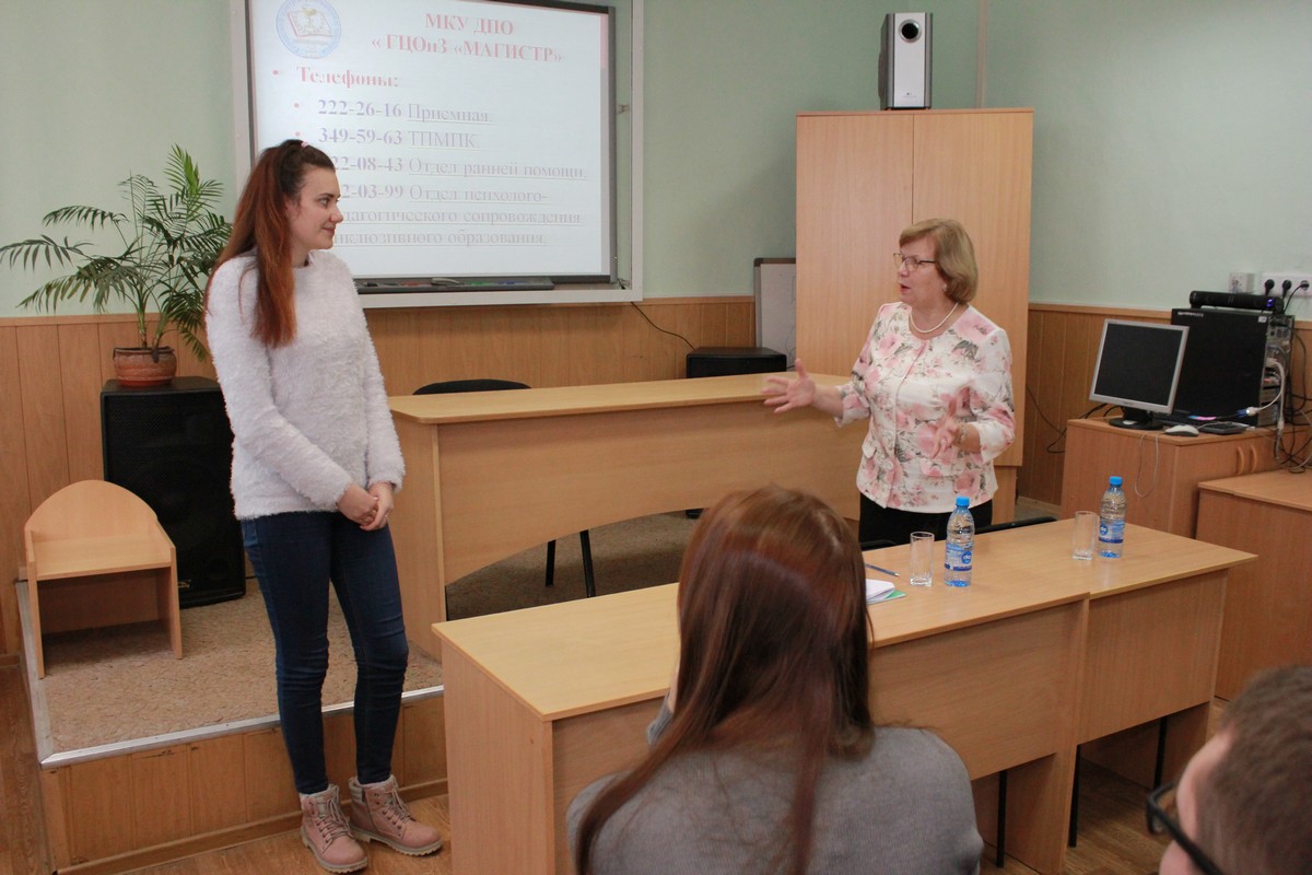 С приветственным словом к молодым педагогам обратилась Татьяна Дмитриевна Яковенко – заведующий отделом психолого-педагогического сопровождения инклюзивного образования «ГЦОиЗ «Магистр».