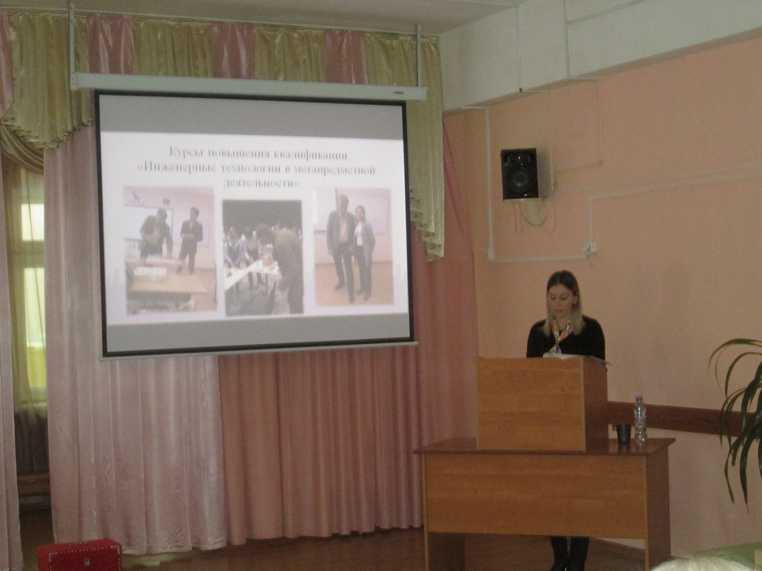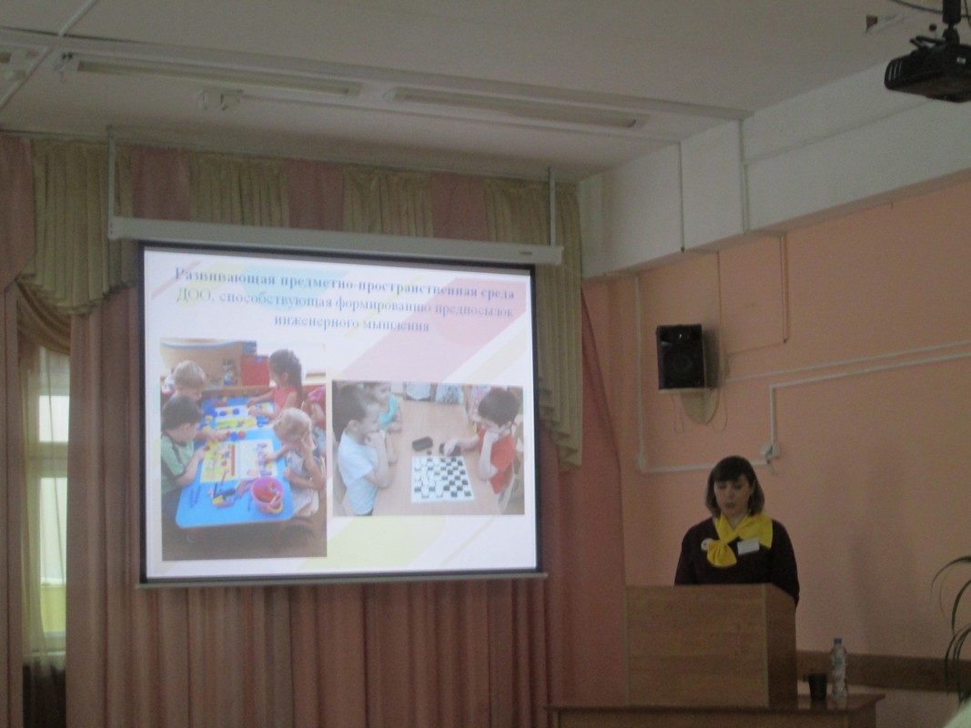 В рамках творческого отчёта дошкольными образовательными организациями №№ 11, 28, 35, 44, 57 Первомайского района были представлены презентации опыта работы по формированию инженерного мышления у детей дошкольного возраста: «Формирование предпосылок инженерного мышления у дошкольников на основе крупного напольного конструктора» (Чебанова Наталья Борисовна, Запрудская Елена Алексеевна, старшие воспитатели МКДОУ д/с № 35); «Информационные и коммуникационные технологии в образовательной деятельности дошкольников. Программа раннего обучения KIDSMART» (фрагмент видеозанятия) (Запрудская Елена Алексеевна, старший воспитатель, Винокурова Ирина Владимировна, педагог-психолог, Кузьмина Елена Эдуардовна, воспитатель МКДОУ д/с № 35); «CUBORO-возможности для педагогов и детей» (Мельникова Юлия Владиславовна, Ковалёва Евгения Сергеевна, воспитатели МКДОУ д/с № 44); «Мини-робот Bee-Bot «Пчёлка» в развитии инженерного мышления детей дошкольного возраста» (Медведева Татьяна Александровна, старший воспитатель МКДОУ д/с № 57).