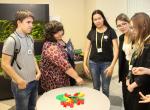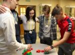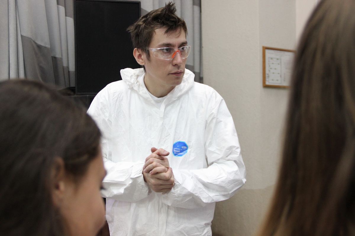 На данном этапе 7 сильнейших команд в составе 6 человек, успешно прошедших первые три этапа – «Конкурс презентационных моделей школьных научных сообществ», «Конкурс эссе» и «Время интеллекта» – приняли участие в интеллектуально-логической игре, которая была проведена совместно с Новосибирским технопарком. Ребята выполнили задания по направлениям: химия, физика, геометрия и черчение, общие знания, литература и командообразование.