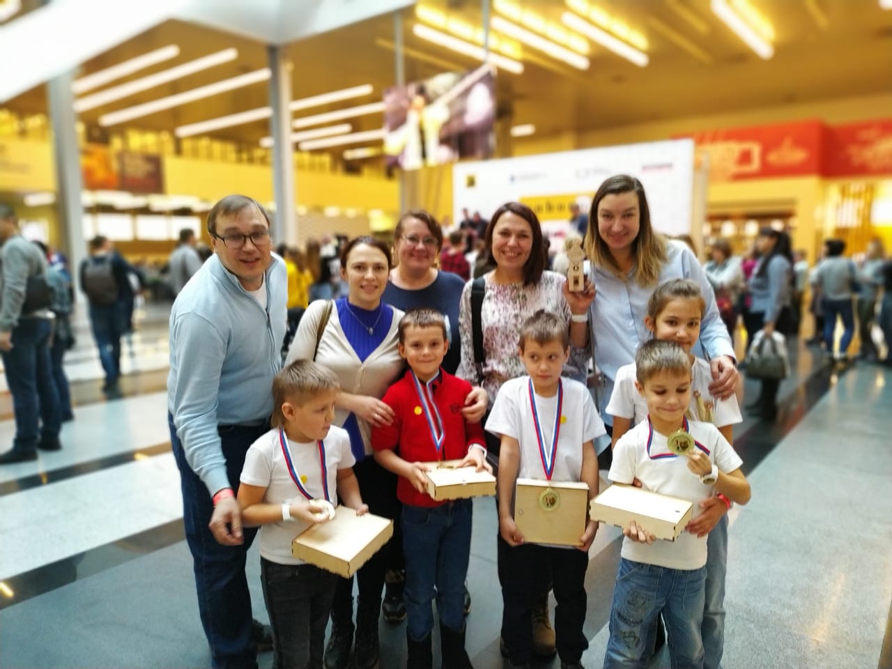 Жидков Илья, Чернов Рома, Шестопалов Марк, Маслаков Гена со своим педагогом Еленой Валерьевной Параскун долго готовились к участию, тренировались, решали задачи и получили достойный результат. Команда Дома творчества стала чемпионом России среди команд ДОУ!