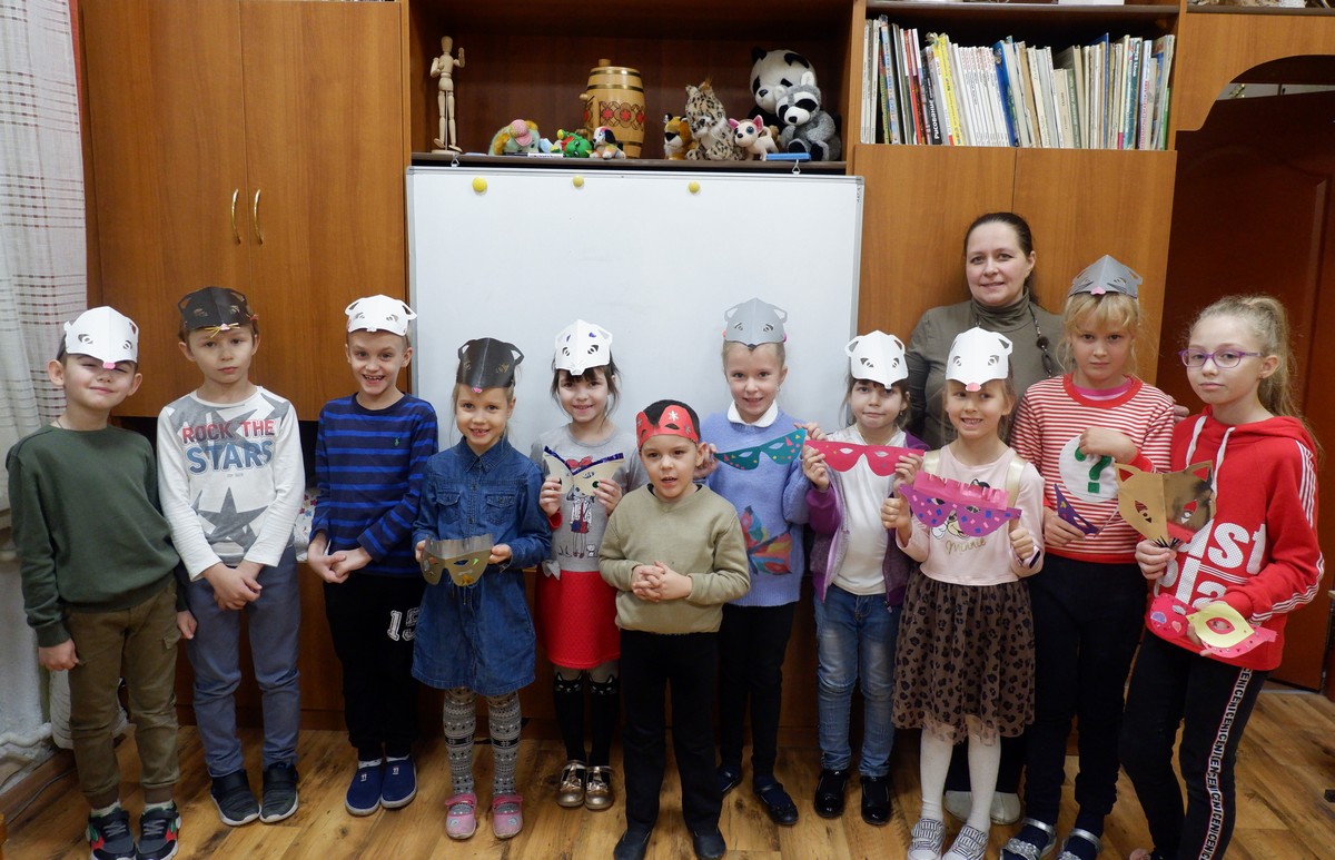 В начале занятия дети познакомились с историей возникновения карнавальных масок, посмотрев видеофильм. Практической работой занятия стало изготовление карнавальных масок из картона, методом зеркального вырезания. Ребятами была выполнена карнавальная полумаска и маска мышки – символа наступающего года по восточному календарю. Участники зарядились предновогодним настроением и унесли с собой готовые маски, которые им пригодятся для встречи такого весёлого и радостного праздника как Новый год.