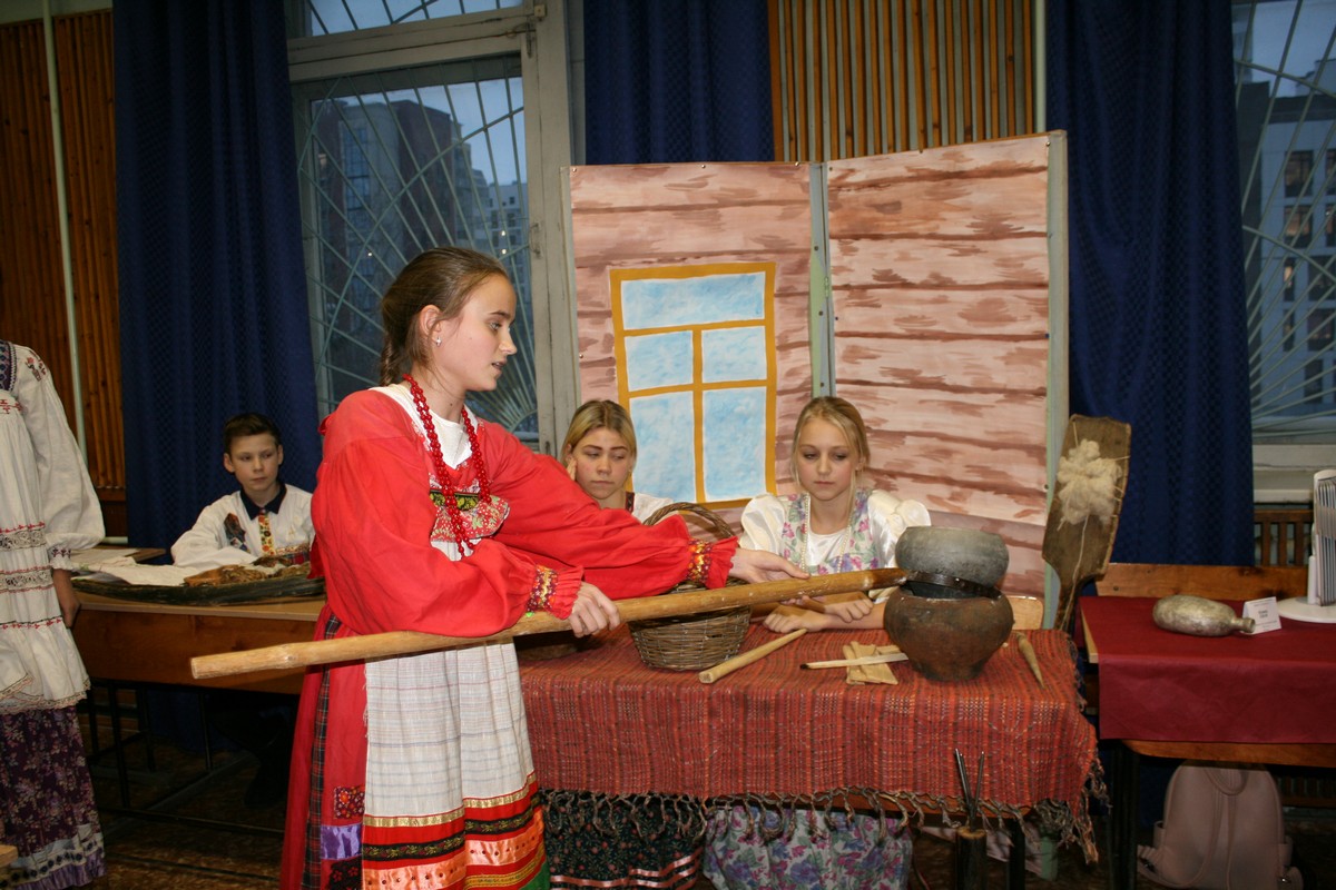 Разрешались и игровые ситуации. Поэтому ребята старались вовсю: пели, танцевали, демонстрировали зрителям и жюри куколки-обереги, лапти, чугуны, раритетные книги и открытки.