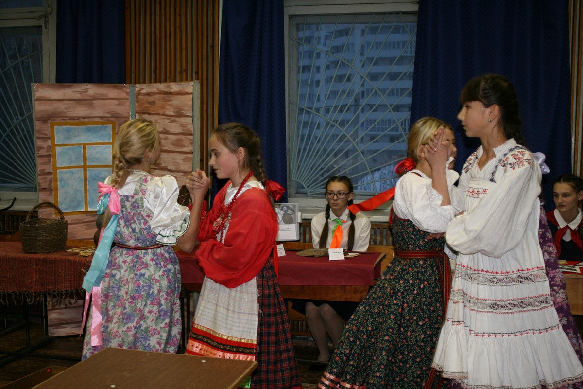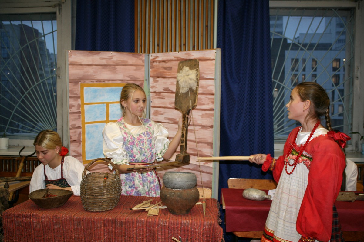 Большинство участников, как детсадовцев, так и школьников, выступало в костюмах. Всех пленило выступление девушек в русских сарафанах из школы №147, которые и пряли, и чугунок из печи вытаскивали, и пели, и хороводы водили.