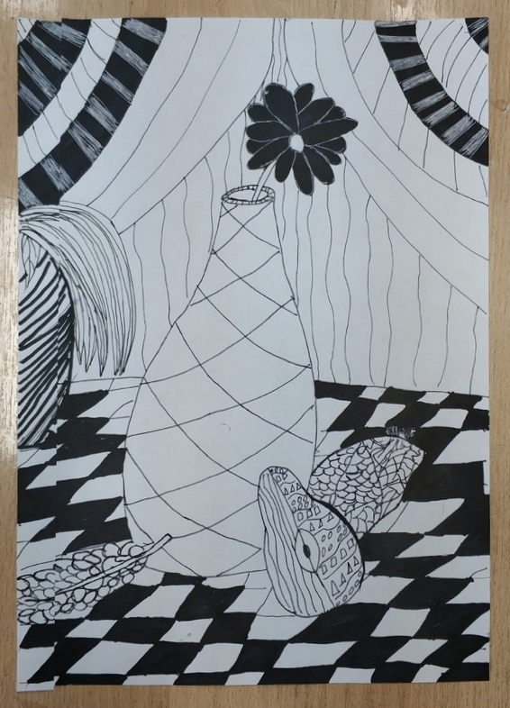 У ребят получились совершенно оригинальные и непохожие натюрморты. Конечно, за одно занятие невозможно освоить графику, но можно получить общие представления и положительные эмоции.