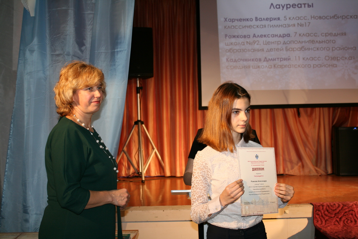 Кулябина Анастасия, ученица 11 класса МКОУ Тогучинского района «Коуракская СОШ им. А.Я. Михайлова», автор лучшей исследовательской работы на секции «Литературное краеведение» (тема «Рисующий словом»: о поэтическом творчестве Александра Пархаева), представленной на IX Тихомировских чтениях, проводимых в рамках XXIII Новосибирских Рождественских Образовательных Чтений. Руководитель Федорова С.А.