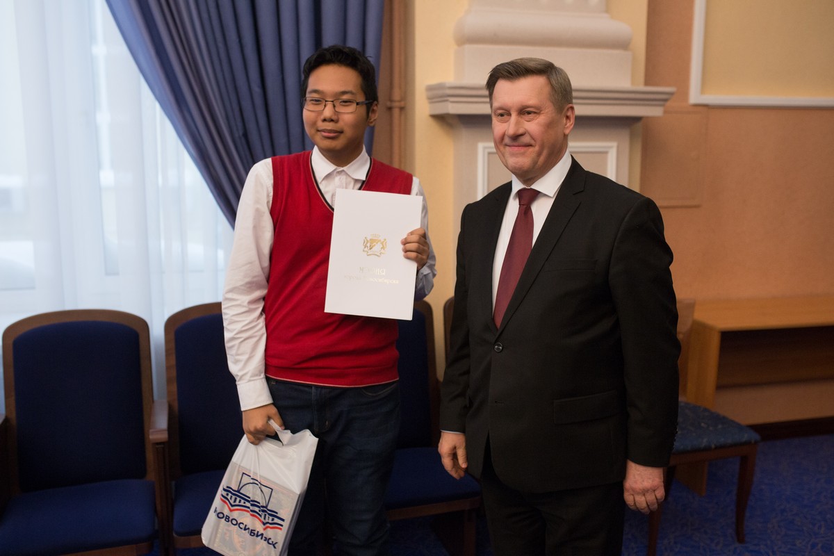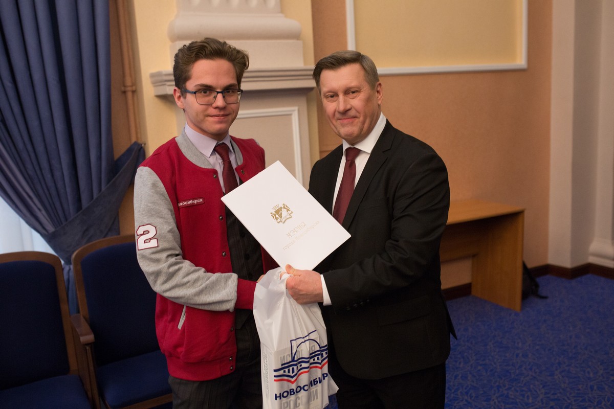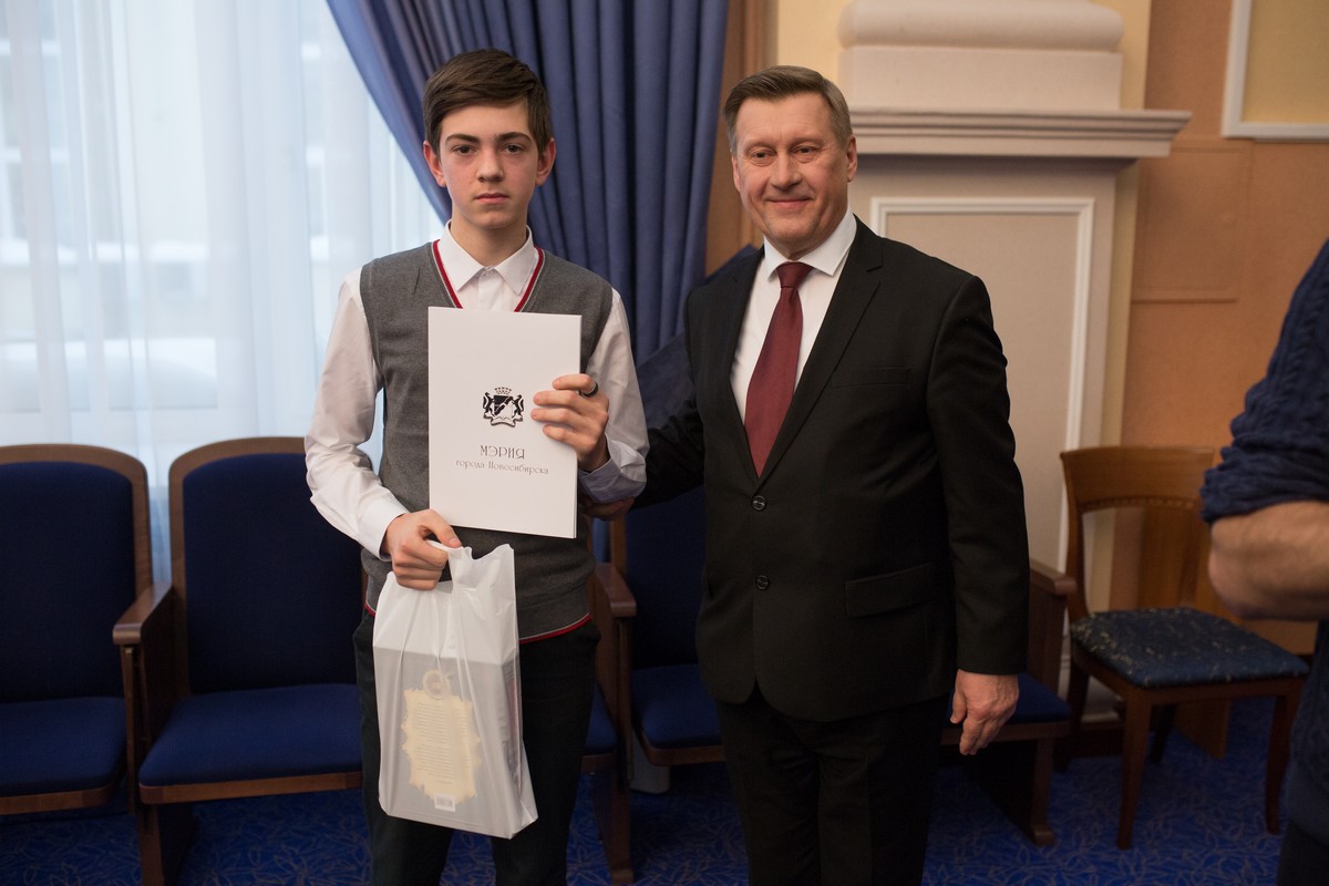 25 декабря в большом зале мэрии состоялся торжественный приём мэра города Новосибирска Анатолия Евгеньевича Локтя отличившихся школьников – победителей и призёров всероссийских олимпиад, фестивалей, конкурсов и соревнований по итогам прошлого учебного года.
