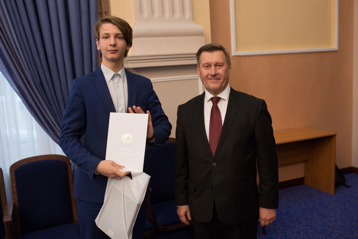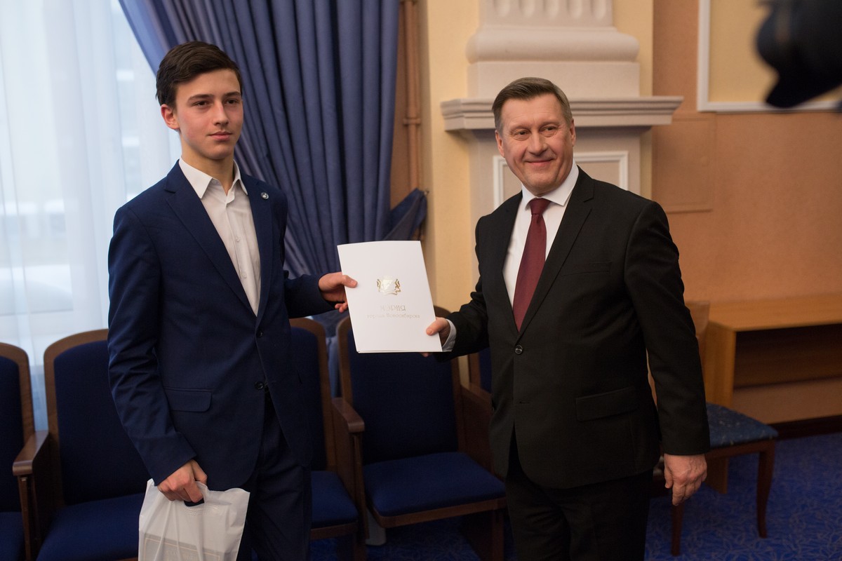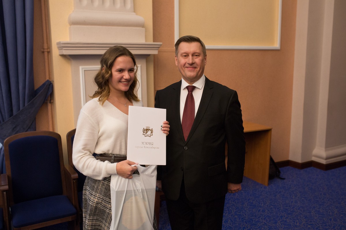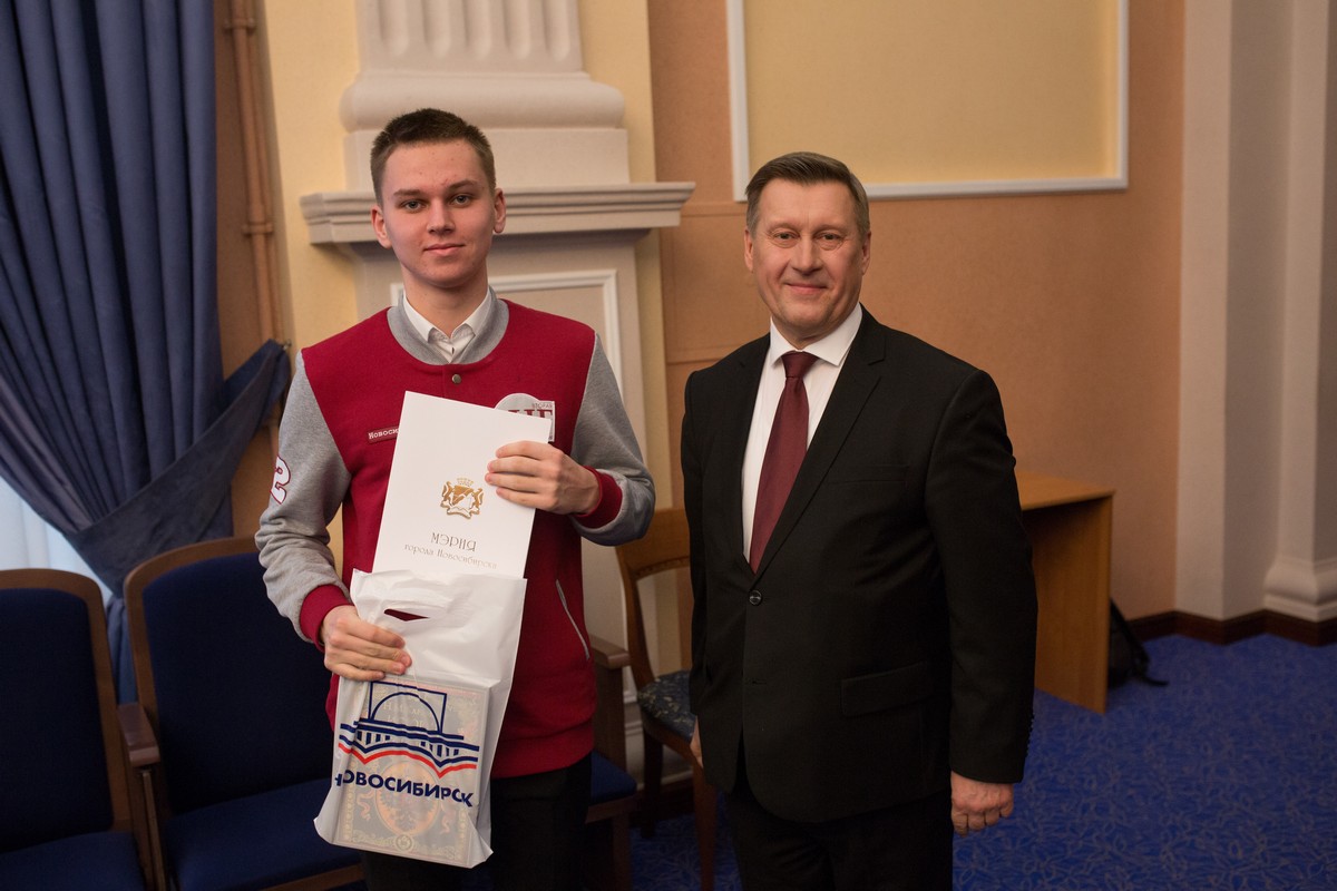 25 декабря в большом зале мэрии состоялся торжественный приём мэра города Новосибирска Анатолия Евгеньевича Локтя отличившихся школьников – победителей и призёров всероссийских олимпиад, фестивалей, конкурсов и соревнований по итогам прошлого учебного года.
