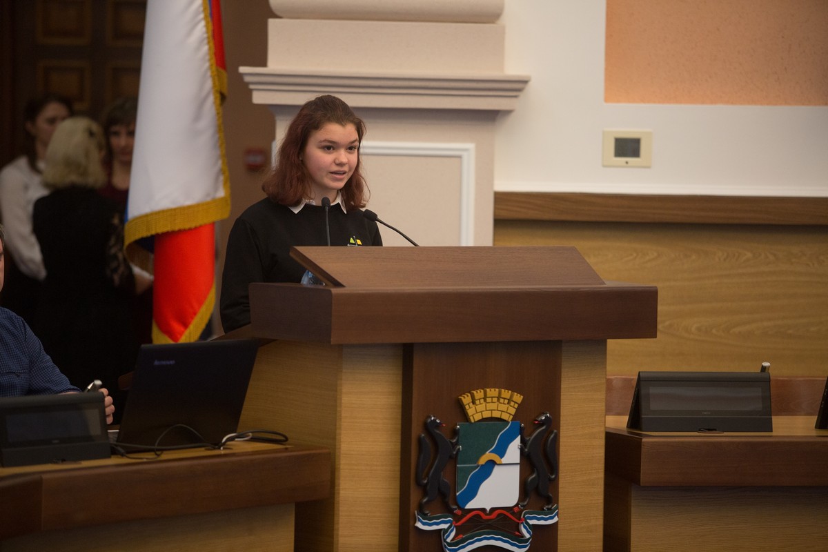 От имени всех участников торжественного приёма с ответным словом выступила призёр инженерной олимпиады школьников «Олимпиада Национальной технологической инициативы» Мартюшова Владислава, обучающаяся МБОУ лицей № 22.
