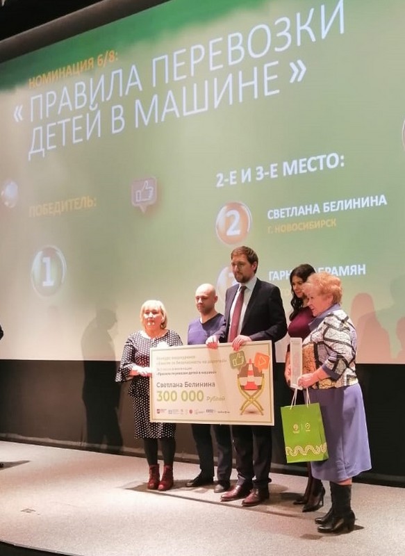 Взрослые и дети потрудились на славу, проявив свои творческие способности, показали отличные знания ПДД. Заслуженную награду в 300 тысяч рублей вручил руководитель ГКУ ЦОДД М. А. Кизлык заведующему МАДОУ д/с № 439 Вере Михайловне Волченко.
