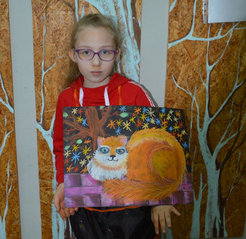 Участники смогли нарисовать одного из соседей по планете – рыжего кота. Рисование пастельными мелками предполагает тесный контакт пальцев руки с бумагой, так как штрихи часто растушевываются при получении нужного оттенка, можно в буквальном смысле слова «почувствовать» рисунок во время работы. Благодаря изобразительным особенностям пастели коты получились пушистыми и веселыми. И конечно же каждый со своим характером и внешними отличиями. Участники мастер-класса получили положительные эмоции и выразили свою индивидуальность в работе.