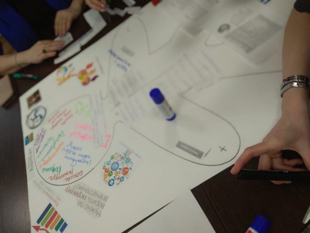 Вторая, практическая часть, педагогического совета прошла в форме форсайт-сессии. В конференц-зале группы в составе предметных кафедр и объединений разработали план развития проектной линии «Учитель будущего». Педагоги в ограниченное время предложили идеи о приобретении дополнительных знаний в предметных областях, обсудили какими компетенциями должен обладать учитель будущего, рассмотрели какими личностными качествами должен обладать педагог и какие ресурсы для развития ему необходимы. Подобные креативные формы работы придают особую атмосферу традиционному педагогическому совету. Легко, с долей юмора, в быстром темпе путем мозгового штурма были собраны отличные идеи, которые остается только реализовать!