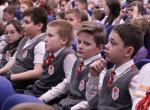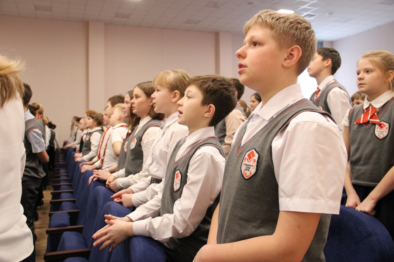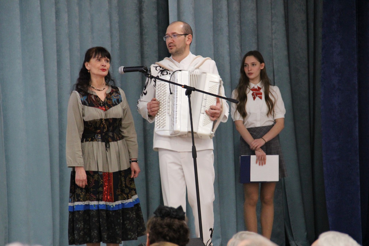 Памятное мероприятие продолжилось в актовом зале, где сотни учеников школы № 215 посмотрели фильм-рассказ Дмитрия Алексеевича Бакурова, встретились с вдовой Екатериной Михайловной Бакуровой, послушали и исполнили песни военных лет.