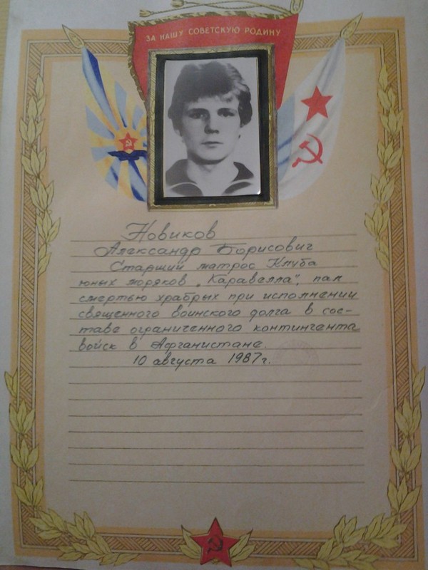 Новиков Александр Борисович, рядовой (22.05.1968 – 26.07.1987). Разведчик-огнемётчик отдельного отряда спецназа, рядовой.