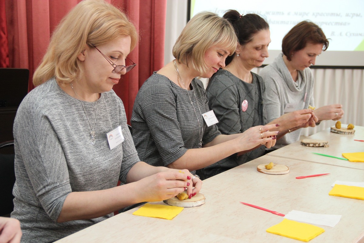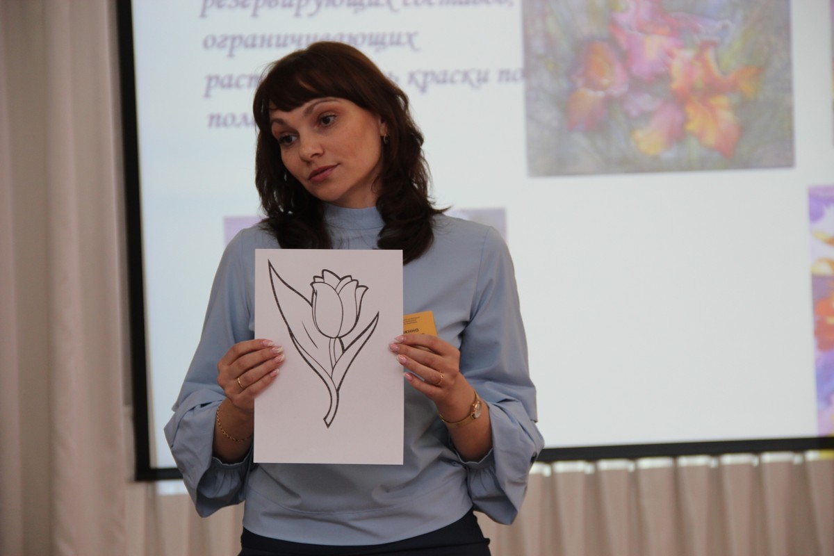 В первый конкурсный день на суд жюри была представлена техника холодного батика, изучение ПДД через игру, лепка из воска, организация экспериментальной деятельности. Также педагоги показали, как можно использовать сенсорную коробку в деятельности логопеда и как теневой театр помогает в художественно-эстетическом развитии.