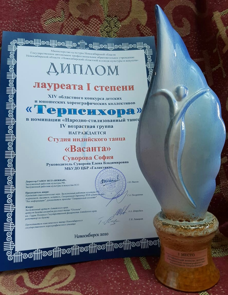 27-29 февраля студия индийского танца «Васанта» приняла участие в областном хореографическом конкурсе «Терпсихора». Этот конкурс в 2020 году проводился в 14-й раз. Организатором является Новосибирский областной колледж культуры и искусств при поддержке Министерства культуры НСО.