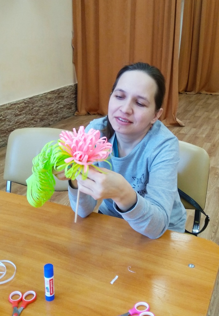 Мастер-класс получился очень познавательным. Многие дети познакомились с технологией изготовления объемного цветка из бумаги, способом декорирования готового изделия, а самое главное узнали, что не так сложно создавать красивые и уникальные подарки своими руками. Процесс изготовления очень понравился и захватил всех участников.