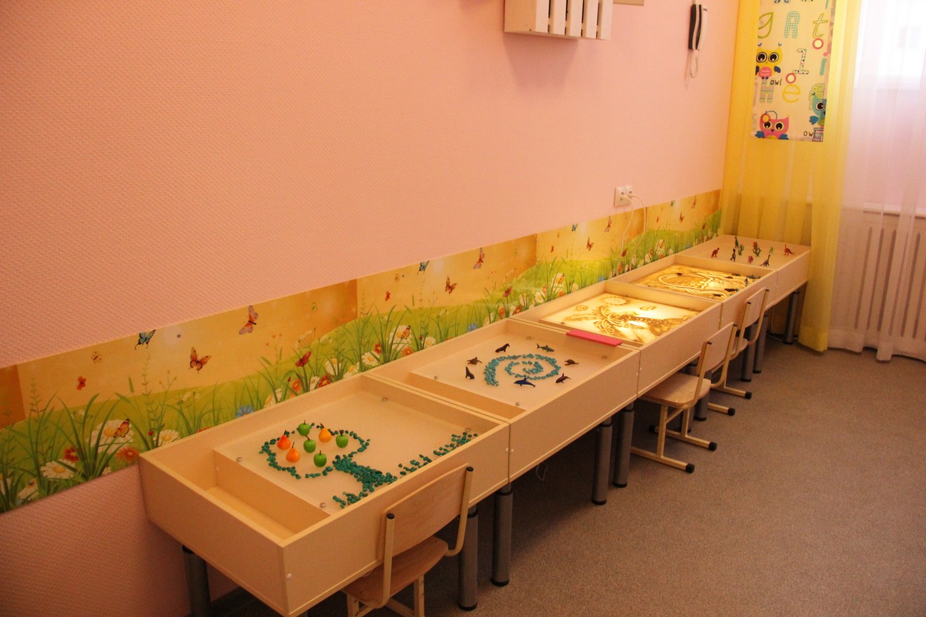 Помимо групповых помещений в здании расположены: пищевой и медицинский блоки, музыкальный и физкультурный залы, прачечная, методический кабинет, кабинет педагога-психолога, кабинет песочной терапии, ИЗО-студия.