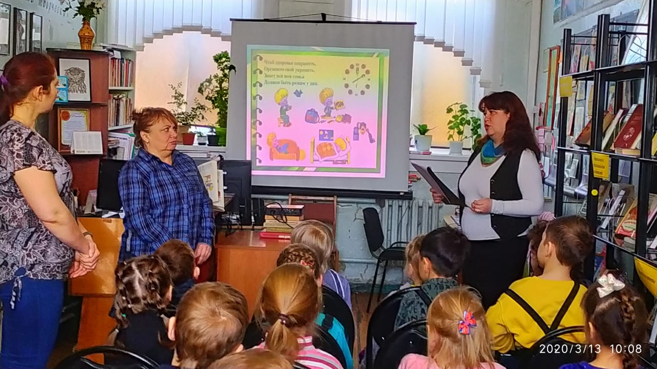 13 марта в библиотеке им. А. А. Блока для дошкольников была проведена игровая познавательная программа «Делу время – потехе час!», в ходе которой шла речь о необходимости соблюдать режим дня. Занятие началось с двух историй. Одна – про девочку Ларису, которая была окружена чрезмерным вниманием своих многочисленных родственников, спала, сколько хотела, ела, сколько и когда хотела, в школу опаздывала, училась нехотя. А другая, про мультипликационного мальчика Сашу, который скачал на телефон игру и играл в нее постоянно – и днем, и ночью. В школу он приходил сонный, с опозданием, в итоге его организм не выдержал и Саша заболел.