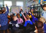 Потом дети поиграли в игру «Покажи действия», где библиотекарь называла время суток, а дети жестом и мимикой показывали, что они в это время суток могут выполнять. Лариса угадывала все их действия.