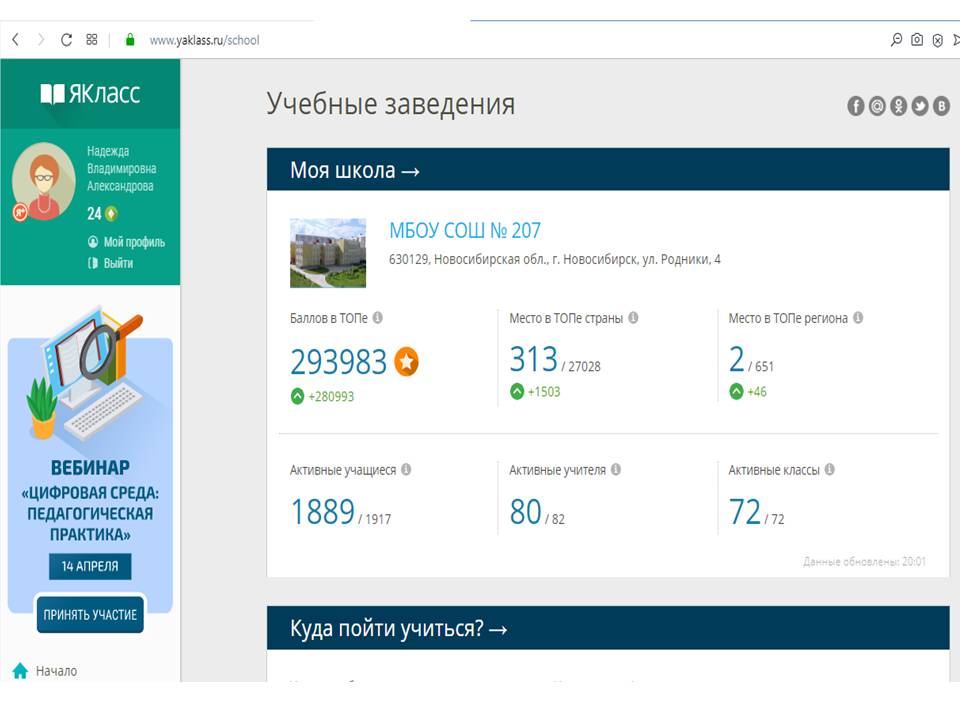 Коллектив МБОУ СОШ №207 второй год работает с цифровым образовательным ресурсом ЯКласс. Ещё год назад коллектив прошёл обучение, и на сегодня вся школа, а это около двух тысяч обучающихся и семьдесят учителей, активно работает в ЯКлассе, занимая лидирующее место в регионе. За первую неделю дистанционного обучения педагоги школы Александрова Н.В., Шульмина Т.А. провели обучающие online семинары «Уроки online в zoom», «Дистанционное обучение в МБОУ СОШ №207», а также познакомили коллег с новым совместным проектом издательства «Просвещение» и компании Skyeng – интерактивная рабочая тетрадь Skysmart. Итогом семинаров стали разработанные инструкции по работе с цифровыми образовательными платформами Zoom, Kahoot и ЯКласс. В школе успешно работает консультационный центр для педагогов и родителей по работе с цифровыми образовательными ресурсами, возглавляемый учителем информатики Рыжовой Н.А. И уже вторую неделю учителя, обучающиеся и их родители встречаются в онлайн режиме на уроках, классных часах и родительских собраниях.