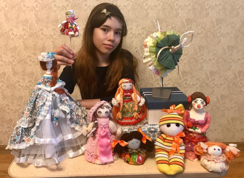 Дуся уже четвертый год занимается исследовательской работой – изучает историю кукол, сама изготавливает их и дарит друзьям. Это уже её пятый мастер-класс, который она провела для ребят.