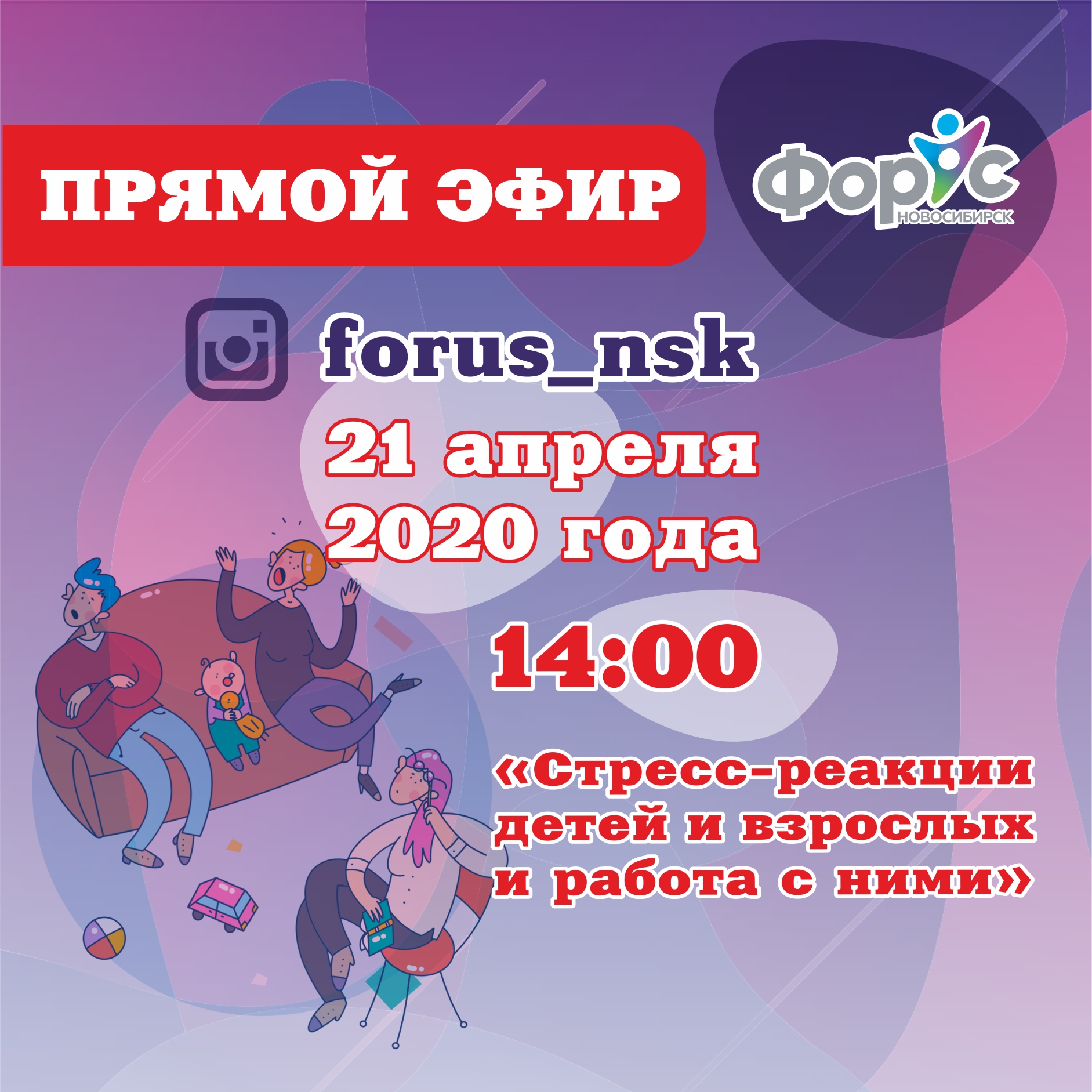 21 апреля в 14:00 в официальном аккаунте инстаграм @Forus_nsk пройдет прямой эфир «Стресс-реакции детей и взрослых и работа с ними».
