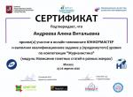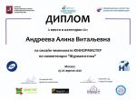 Помимо этого, ребята заняли в Чемпионате призовые места. Артем Велигуров и Алина Андреева заняли первое и второе места в продвинутом уровне, Ольга Сидорова стала обладателем второго места в базовом уровне, Марина Кочергина получила сертификат базового уровня, Дарья Комиссарова – сертификат участника.