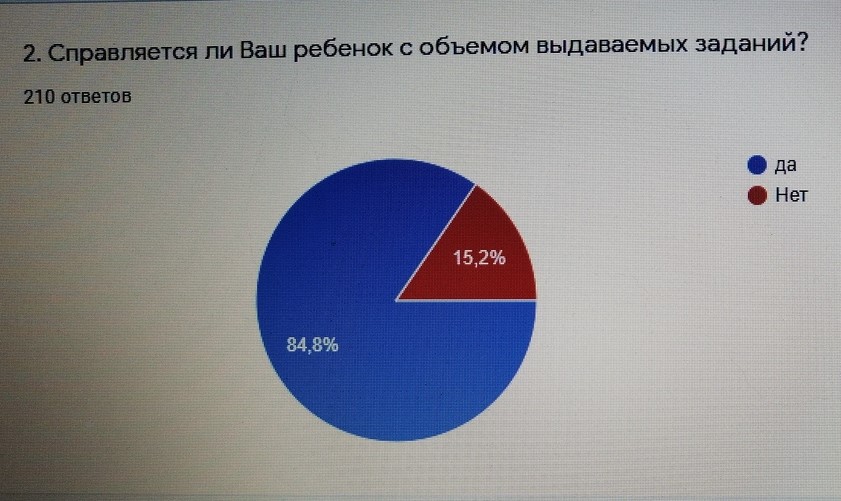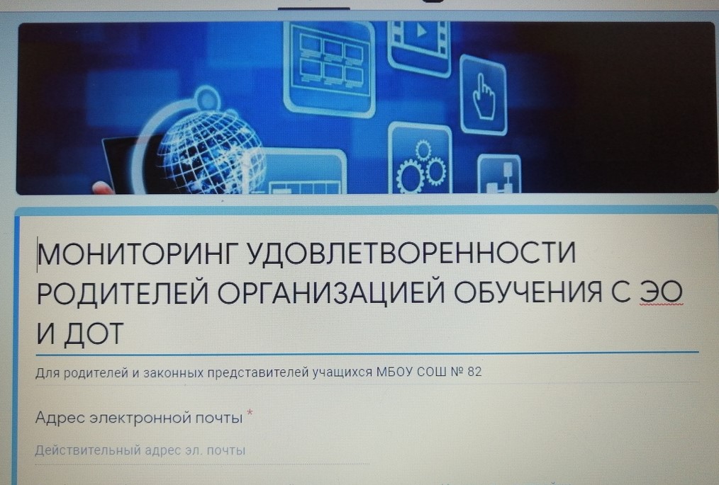 Для того, чтобы понять насколько верно и грамотно организована образовательная деятельность с учетом дистанционных технологий и определения удовлетворенности качеством дистанционного образования, администрация МБОУ СОШ № 82 попросила ответить родителей обучающихся на вопросы анкеты. Очень важно было узнать, удовлетворяет ли родителей организация учебного процесса в существующем дистанционном формате? Справляется ли ребенок с объемом выдаваемых заданий? Сколько времени у ребят уходит на самостоятельную подготовку к занятиям? Также необходимо было знать мнение родителей об организационной деятельности классных руководителей, так как именно они стали ключевой, базовой фигурой в дистанционном образовании. Кроме того, родителям было предложено оценить по шкале от 1 до 5 психологическую комфортность взаимодействия с классным руководителем.