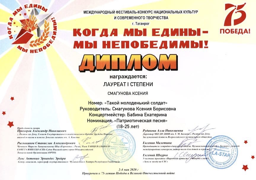 Совместный номер двух талантливых коллег «Такой молоденький солдат» стал лауреатом 1 степени в номинации «Патриотическая песня». Мы поздравляем от души и желаем дальнейших успехов в творчестве!