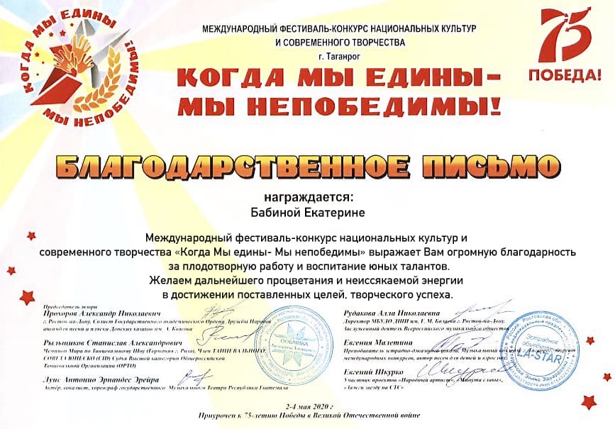 Педагоги ЦРТДиЮ «Заельцовский» – лауреаты международного онлайн фестиваля, посвященного 75-летию Победы