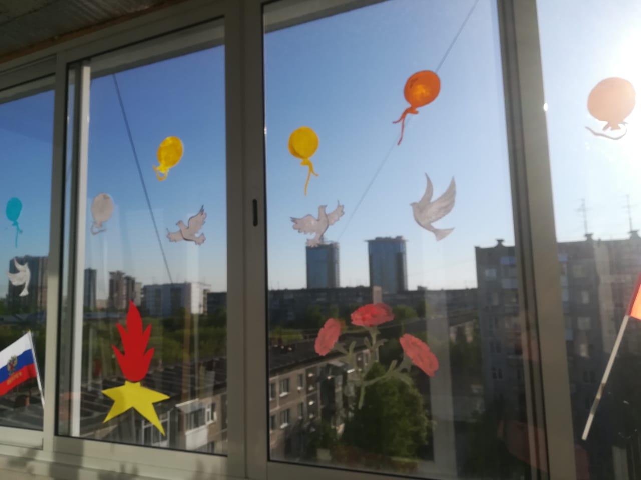 Отдельно хочется рассказать об участии во Всероссийской акции «Окна Победы». Через новостную ленту на сайте нашим семьям было предложено принять участие в данной акции. Родители и сотрудники с большим удовольствием откликнулись на призыв, превратив свои окна в галерею памяти, украсив их рисунками и вытынанками на тему «Победа».