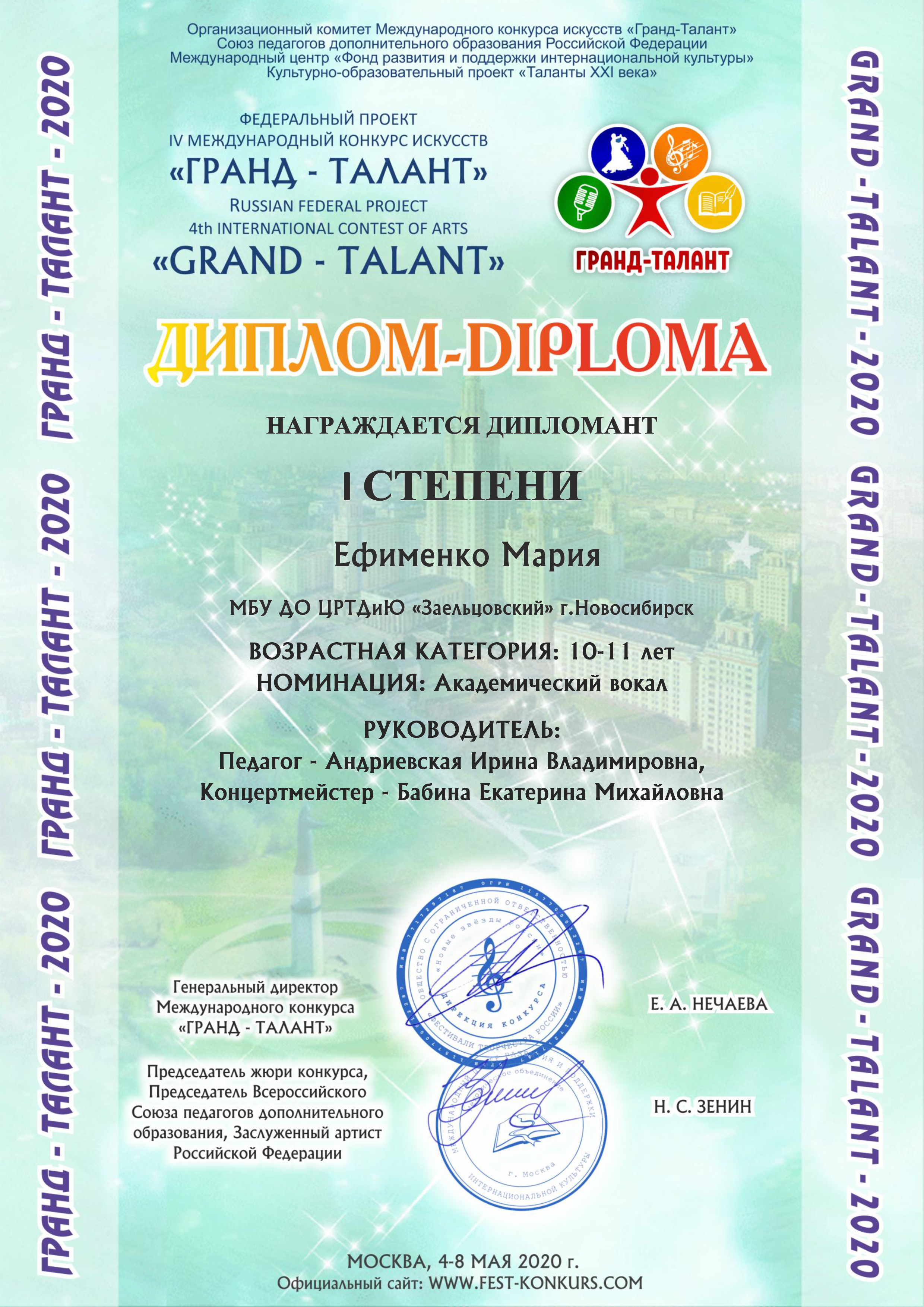 Воспитанники Арт-студии «Solo» ЦРТДиЮ «Заельцовский» – победители IV международного конкурса искусств «Гранд-талант 2020»