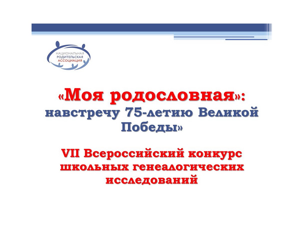 Подведены итоги VII Всероссийского конкурса школьных генеалогических исследований «Моя родословная» с участием семей соотечественников, проживающих за рубежом. Организатор мероприятия – Общероссийская общественная организация «Национальная родительская ассоциация социальной поддержки семьи и защиты семейных ценностей».